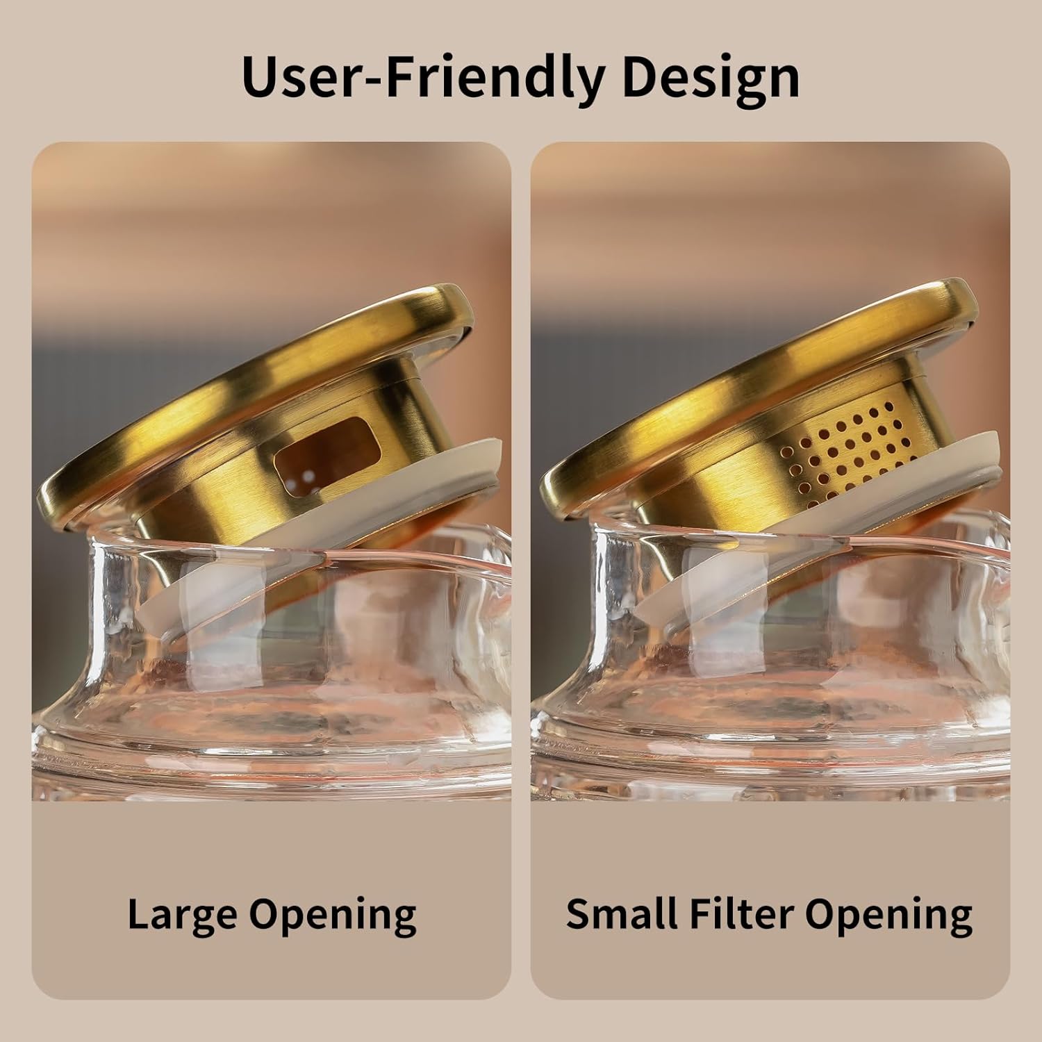 - 【100% STAINLESS STEEL LID WITH TWO OPENINGS】The lid is made of 100% stainless steel, so whether you use it for three or five years, you don't have to worry about the rust of the lid and the lid has two openings, which can be turned to pour water or the other side to filter beverages. The soft silicone seal keeps the lid firmly on the lid to prevent leakage.