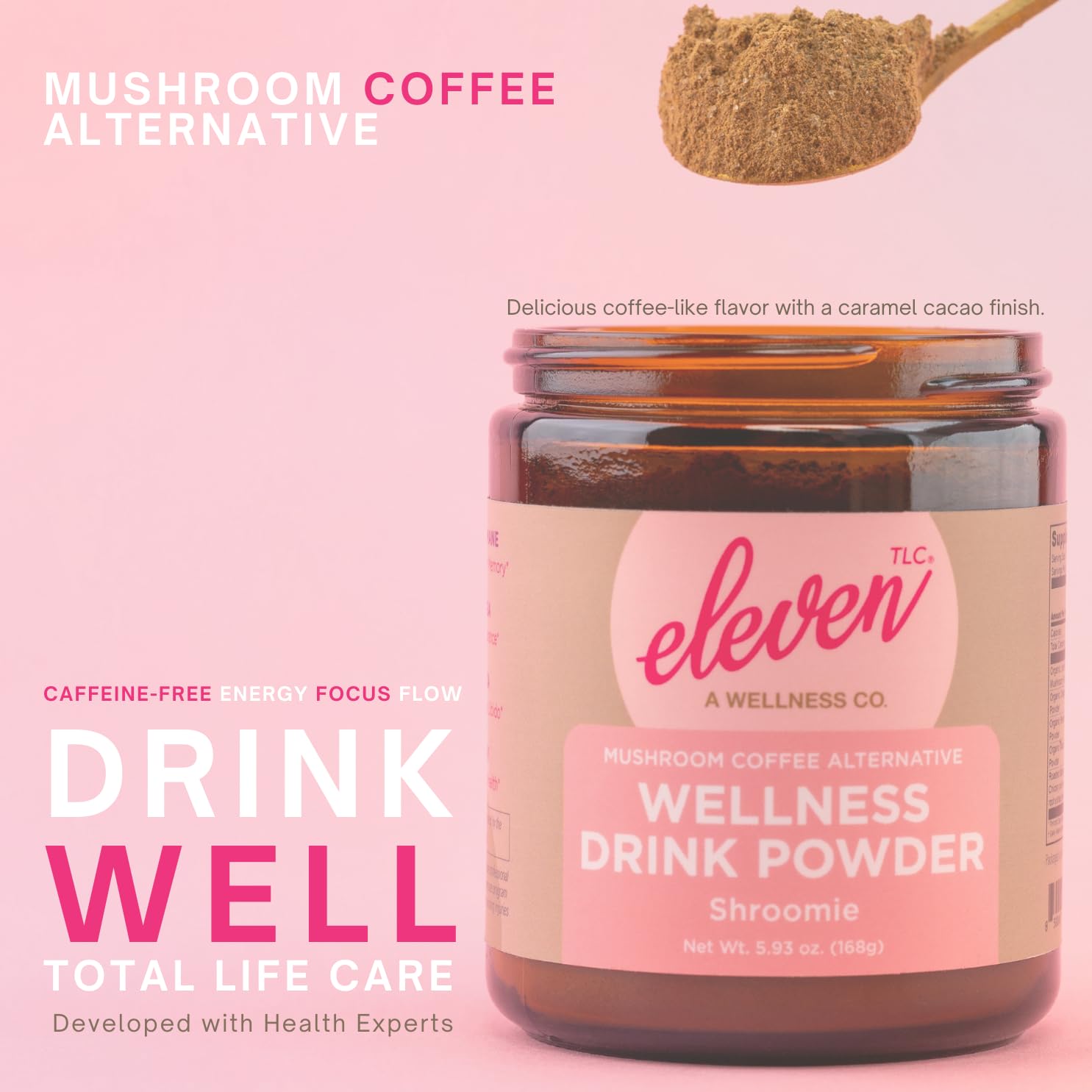 Eleven TLC, Shroomie Master Mind Coffee Substitute, Caffeine-Free Energy, 8 Mushrooms + Superfoods, Developed by MD, Non-Reactive Glass Jar