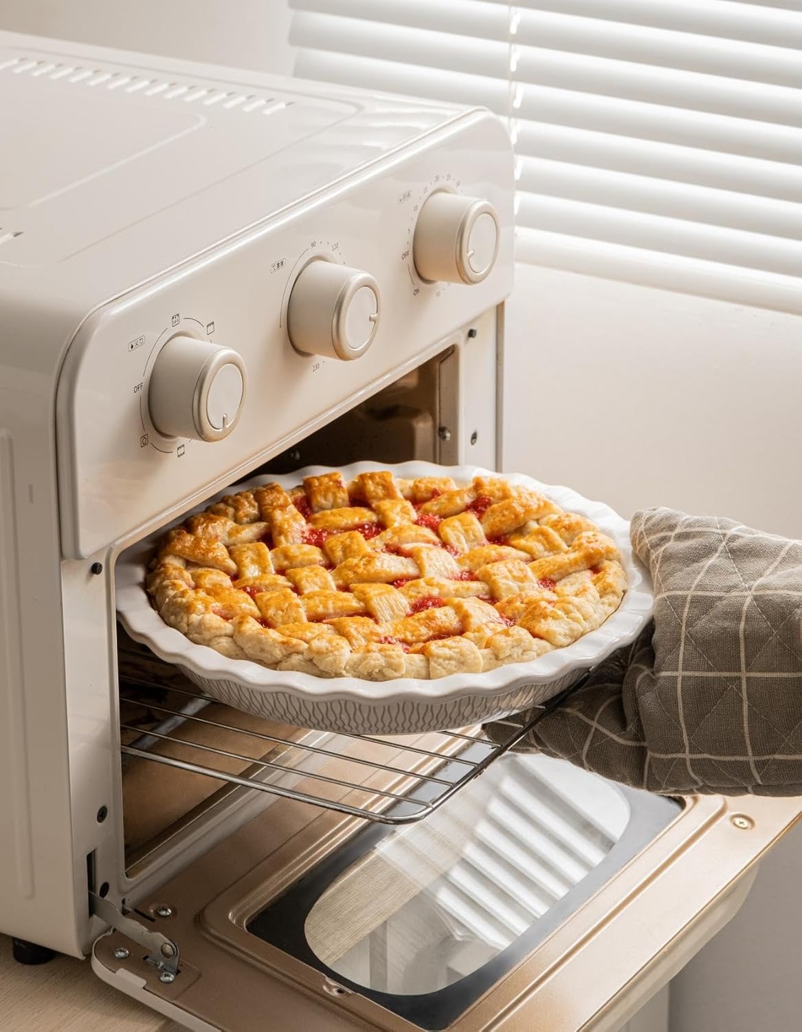 - Classic Pie Dish: Ceramic pie pan is at 9 inches in diameter and 1.8 inches in height, it's the perfect size for baking apple pie, pumpkin pie, quiche, crust, fruit pies, pot pies, crisps, cobblers, custard pies and more, also pretty dish for serving