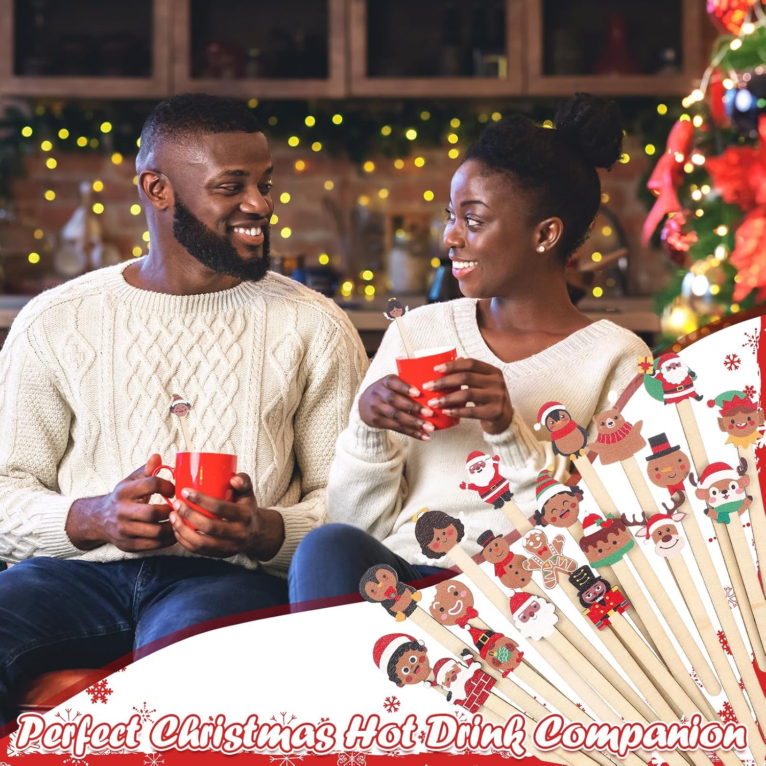 - Cute African American Designs: the top of wooden stir sticks comes in vibrant colors and patterns; Their Christmas themed designs brighten up festive decoration, including gingerbread man, penguin, snowman, santa claus and more, adding a fun touch to your Christmas parties and gatherings