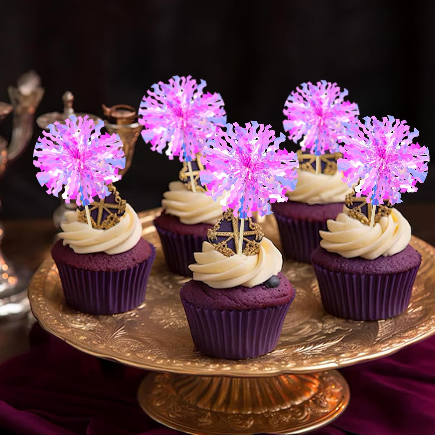 - 【NO Required】: 30Pcs Foil Firework cupcake toppers can put in the cake directly! These 30Pcs Foil Firework Cupcake toppers save your time and super easy to use. You can easily dress up your birthday theme cakes, yes! but don't stop there, put them into desserts, cookies, fruit pieces, appetizers, muffins and so much more!
