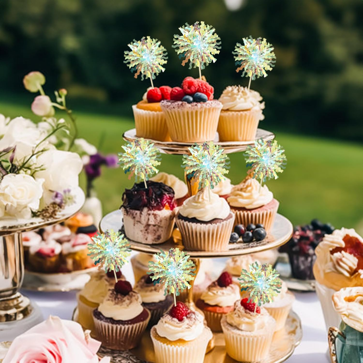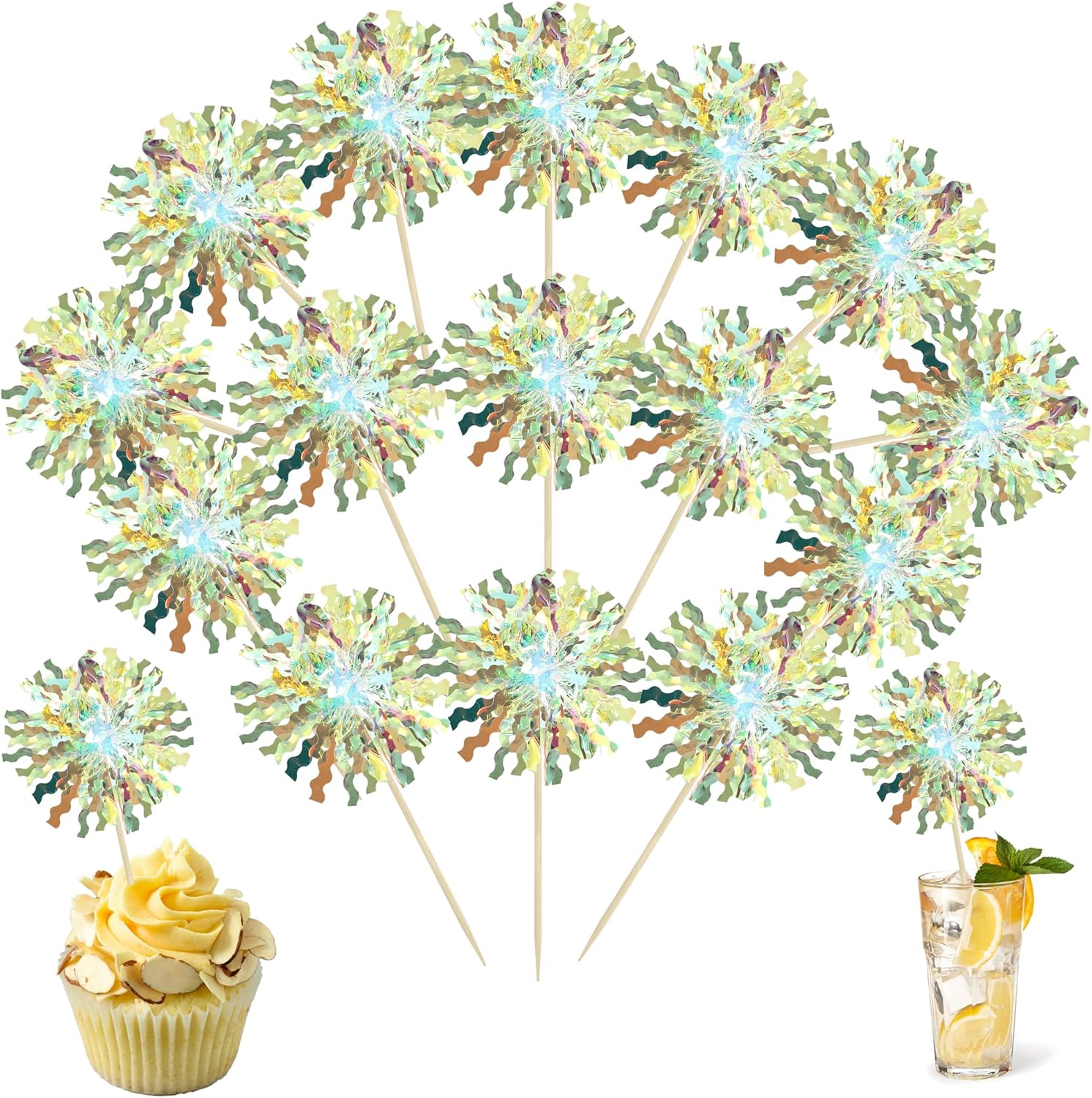- 【NO Required】: 30Pcs Foil Firework cupcake toppers can put in the cake directly! These 30Pcs Foil Firework Cupcake toppers save your time and super easy to use. You can easily dress up your birthday theme cakes, yes! but don't stop there, put them into desserts, cookies, fruit pieces, appetizers, muffins and so much more!