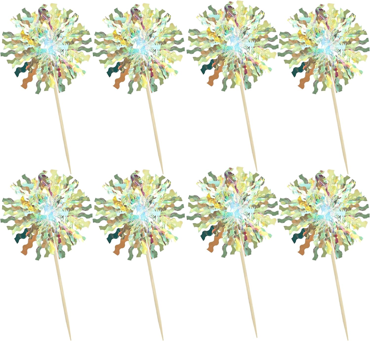 Ephlyn 30Pcs Foil Firework Cupcake Toppers Sparkle Tinsel Cupcake Picks Firework Cake Decorations Cocktail Food Fruit Toothpicks for Baby Shower Graduation Party Supplies White