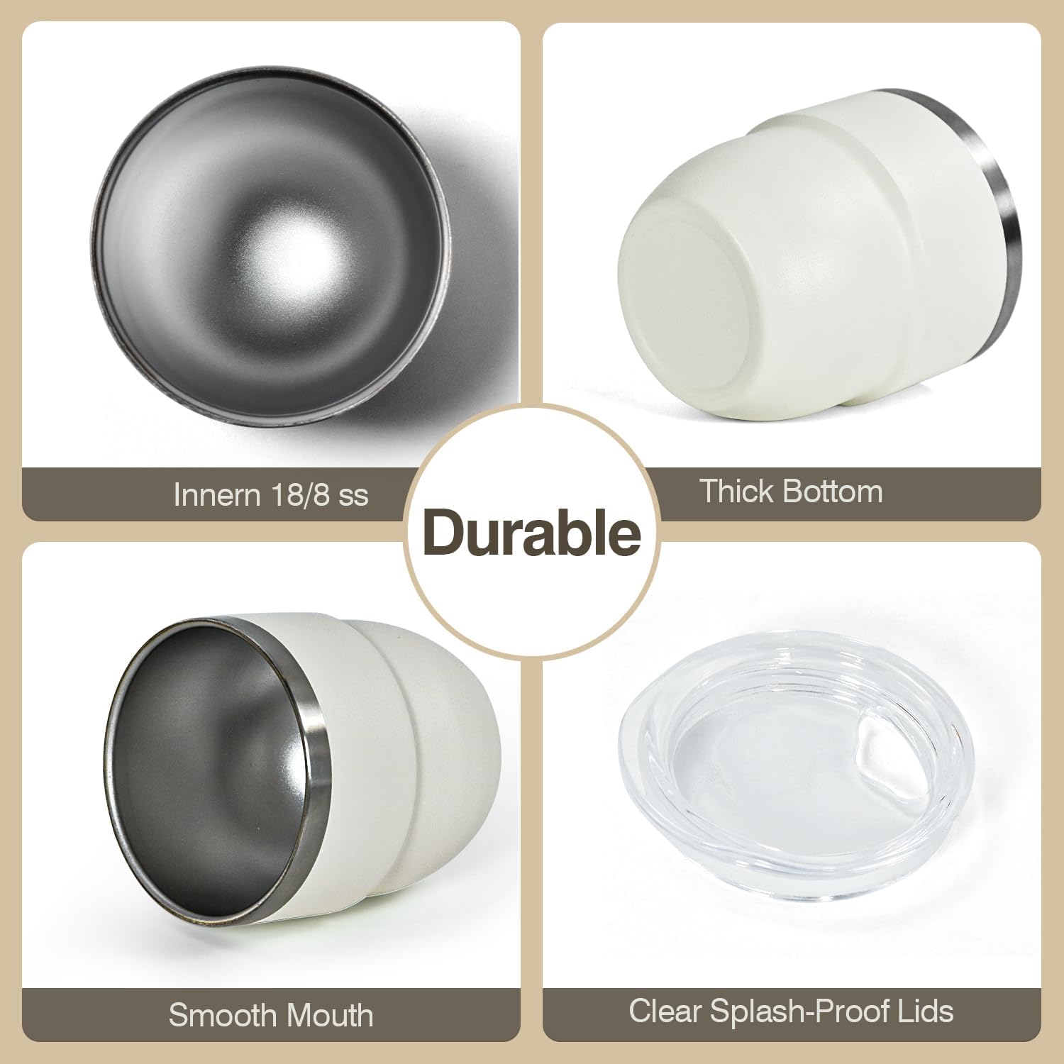 - DOUBLE WALL STAINLESS STEEL: Our espresso cups are made from double wall 18/8 stainless steel, vacuum insulated. Compared to ceramic lining, stainless steel lining are more durable, anti-scald, odourless, not break easily, and better at retaining hot or cold. Whether it's a hot coffee or an iced coke, this small cup is up to the task!