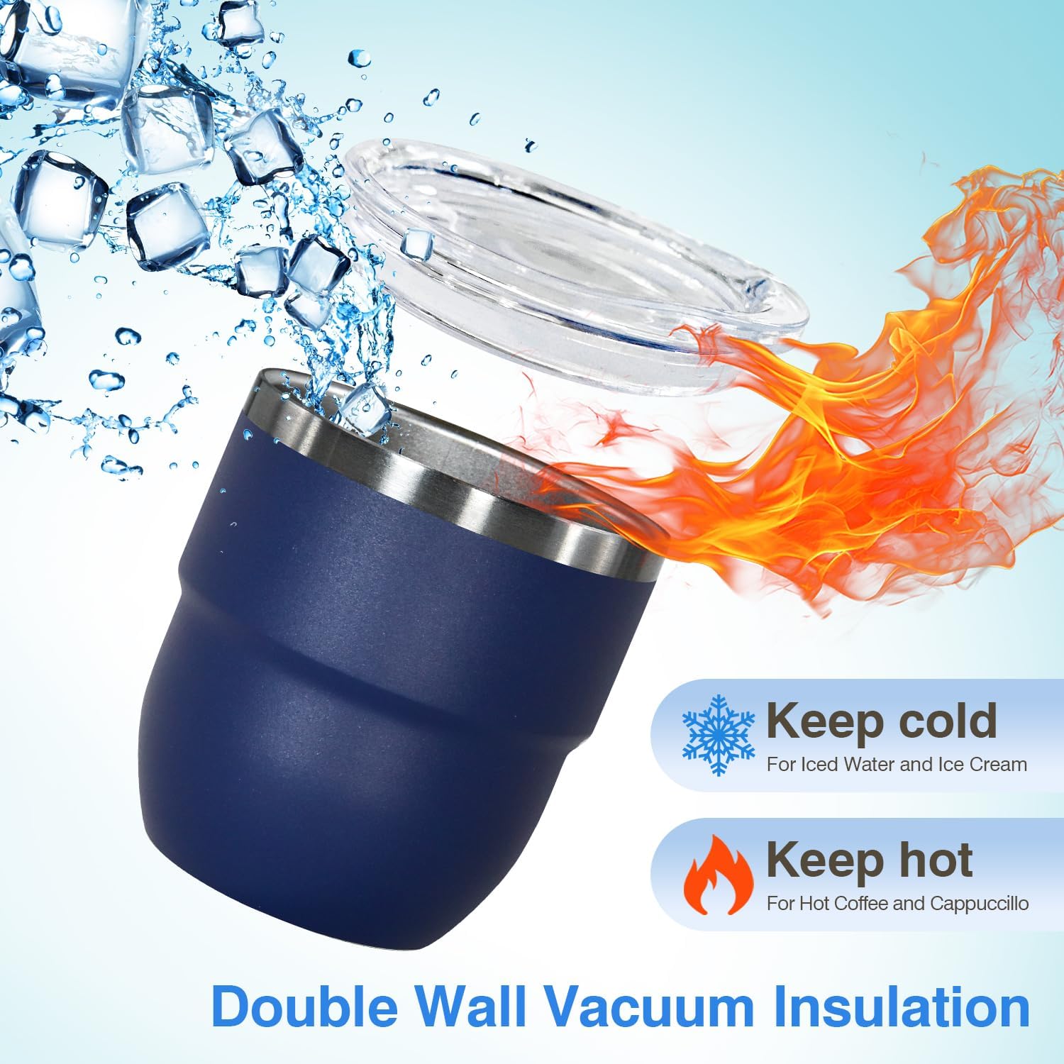4oz Stackable Cup, Vacuum Insulated Espresso Cup Set of 6, Espresso Shot Cup for Coffee, Double Wall Stainless Steel Mini Tumbler Shot Glasses with Straw and Lid (A-navy6P, 4oz)