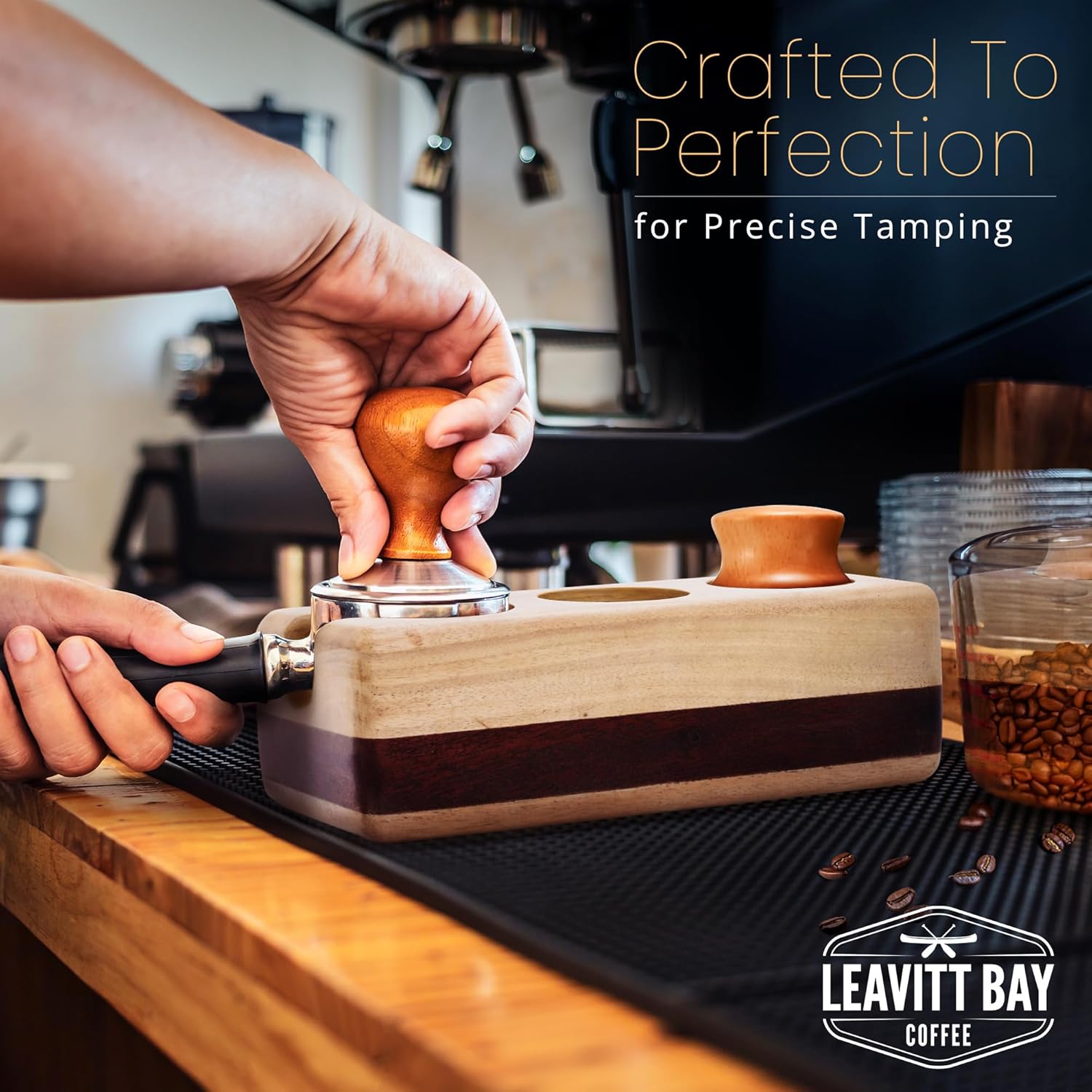 Espresso Tamping Station - Portafilter Holder (72mm) - Acacia & Mango Wood Espresso Station & Tool Organizer - Essential Accessories for Baristas