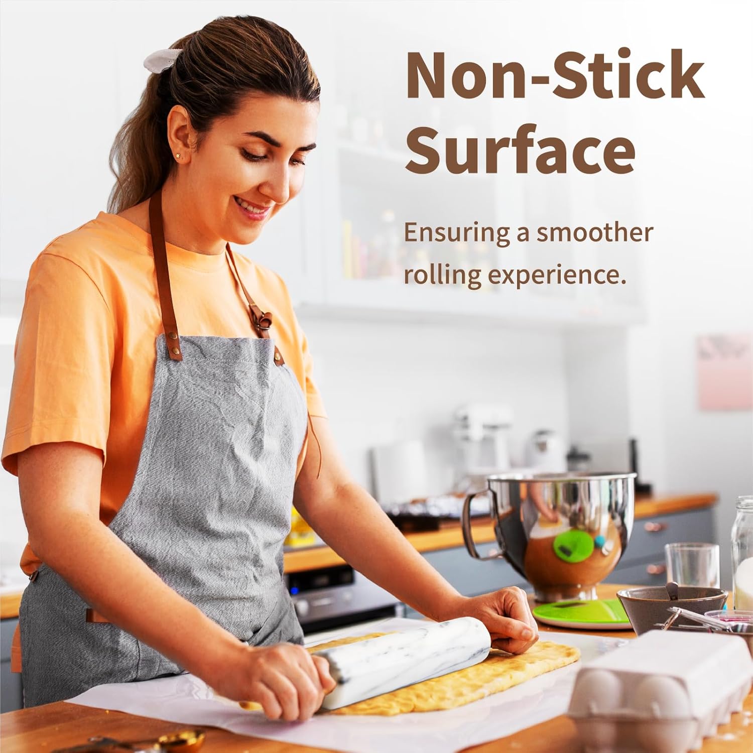 - 【Non-Stick Surface for Effortless Rolling】The natural marble surface of this rolling pin is inherently non-stick. It stays cool and doesn’t hold onto the dough, helping maintain the dough’s texture and moisture. Whether you’re making delicate pastries, bread, or pizza dough, the smooth, cool marble ensures a flawless rolling experience every time, saving you time and effort in the kitchen.