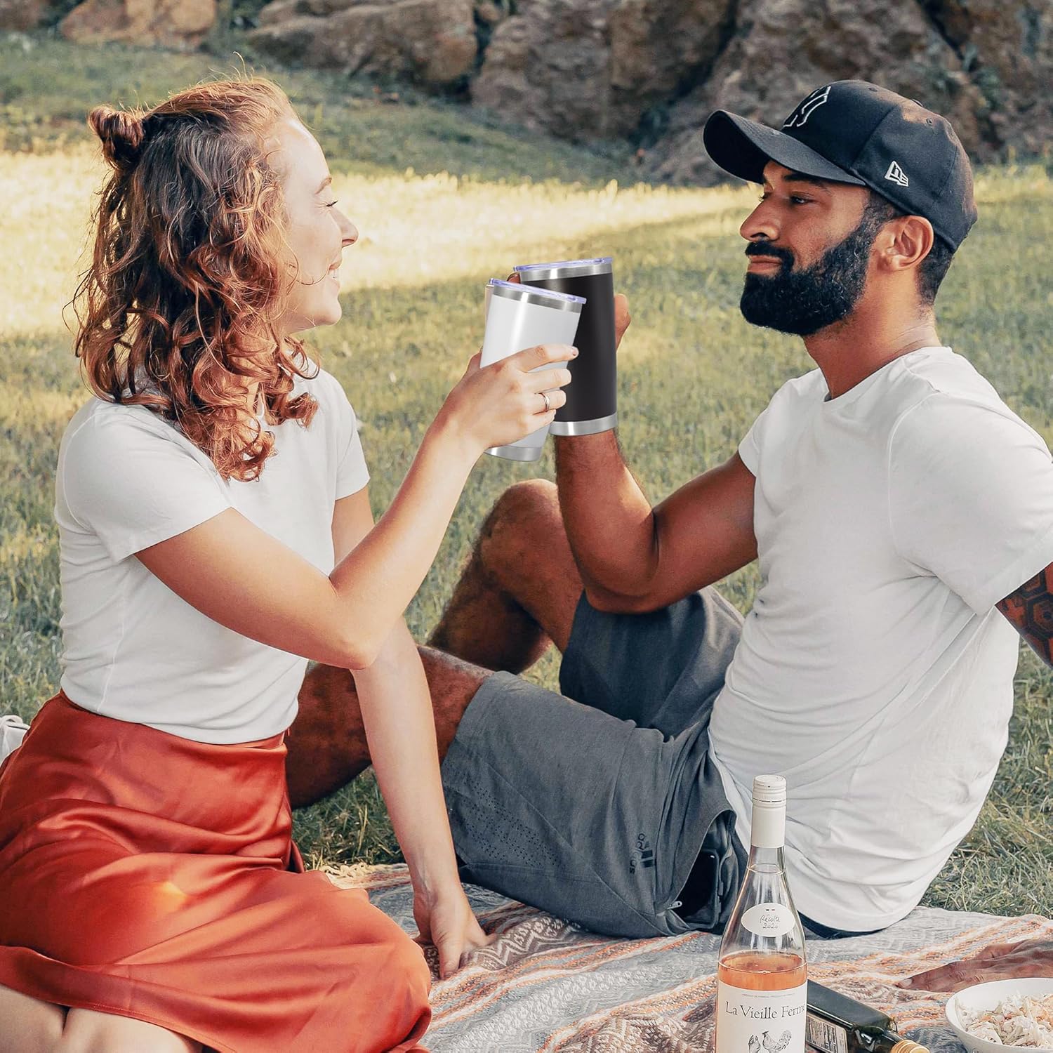 - POWDER COATED & EASY TO HOLD - The outside of the insulated travel tumblers is non-toxic frosted powder coating. There are 12 colors of powder coating, there is always a style you like. The frosted texture of the tumblers’ outer wall makes it easy for you to hold and the outer wall of the tumbler will never hang water droplets. In addition, Our insulated tumblers are also suitable for laser engraving, vinyl decals or color painting