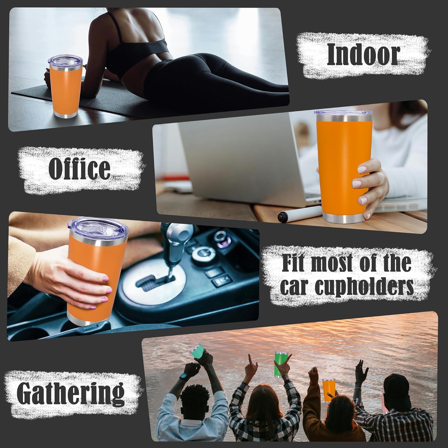 20 oz Tumbler Coffee Tavel Tumblers Bulk with Lid Stainless Steel Double Wall Vacuum Insulated Mug Powder Coated Cups fit Car Cupholder for Hot and Cold - Orange, 4Pack