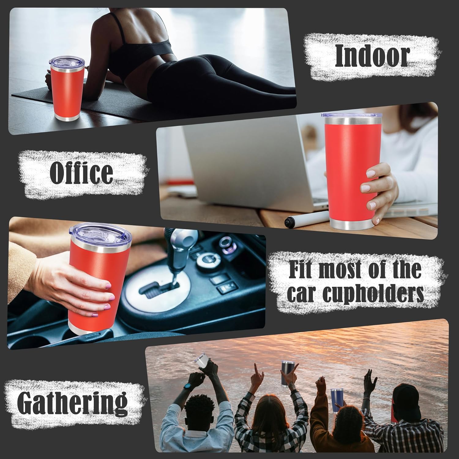 20 oz Tumbler Coffee Tavel Tumblers Bulk with Lid Stainless Steel Double Wall Vacuum Insulated Mug Powder Coated Cups fit Car Cupholder for Hot and Cold - Red, 4Pack