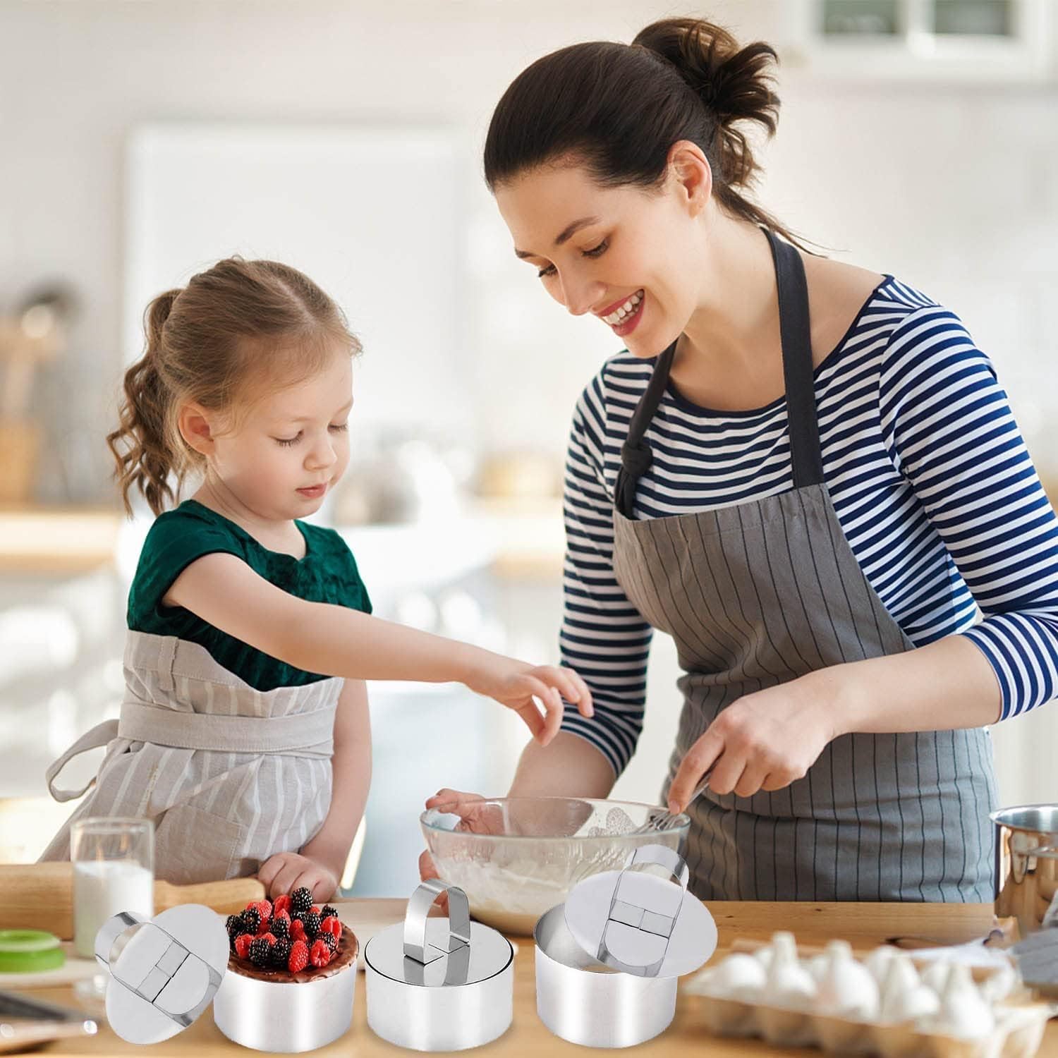 - Packing list: The package contains 2 silver round stainless steel cake mousse rings, Meets all your baking needs.