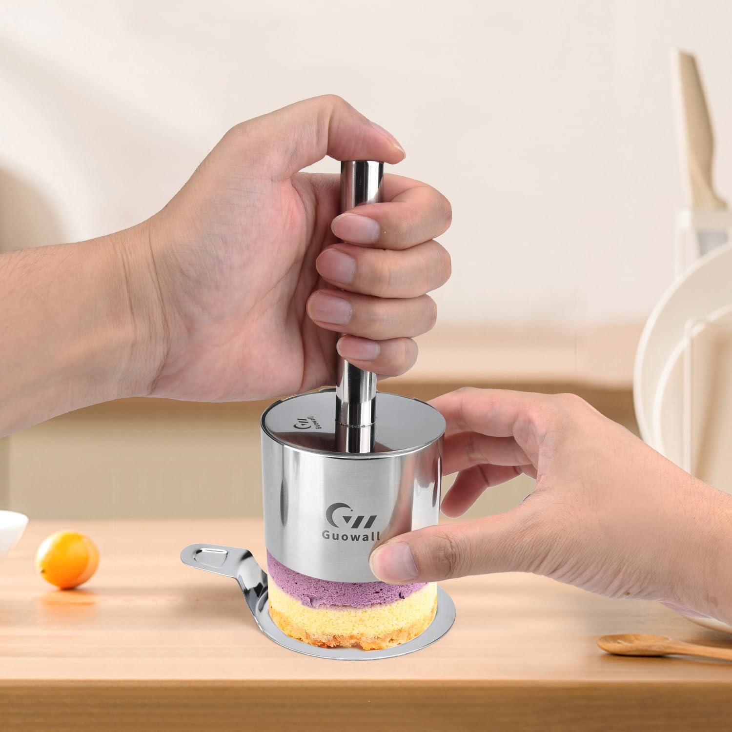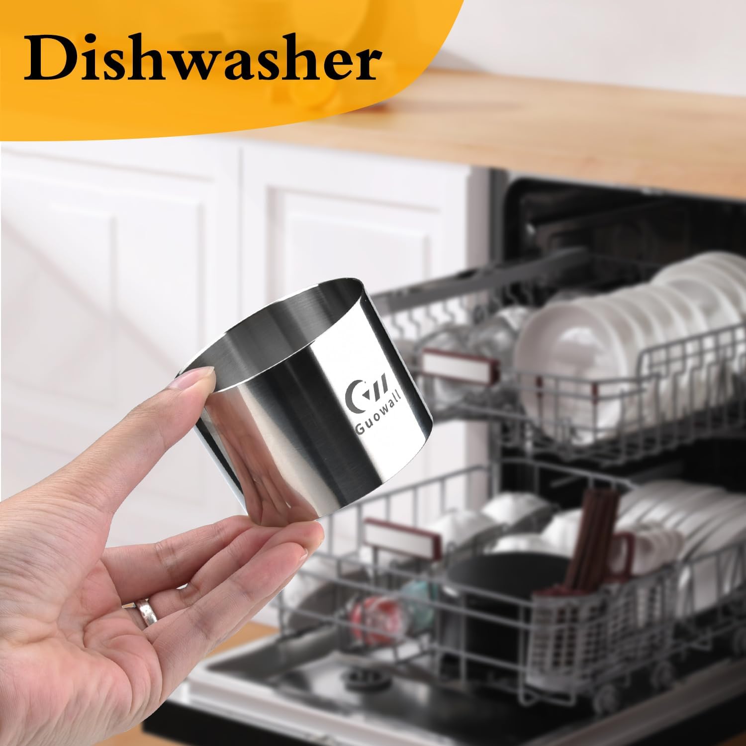Guowall 6 pack Seamless Mousse Ring Set 3 inch Stainless Steel Round Cake Cutter Food Pastry Mold for Baking (Includes 1 Lifter, 1 Pusher and 6 Rings)