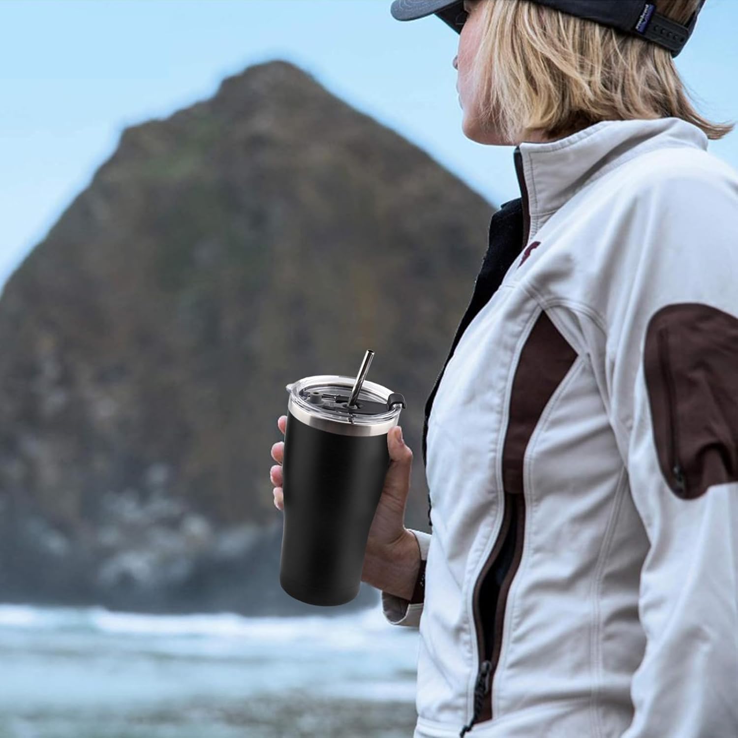 - 🍺【SLEEK AND LIGHTWEIGHT DEIGN】The 20 ounces travel mugs new S-Curved side is Easy Grip and fit into most car cup holders, which suitable for home, office, road trips, indoor outdoor. Gift ideas for Birthday, Christmas, Valentine’s or New Year's.