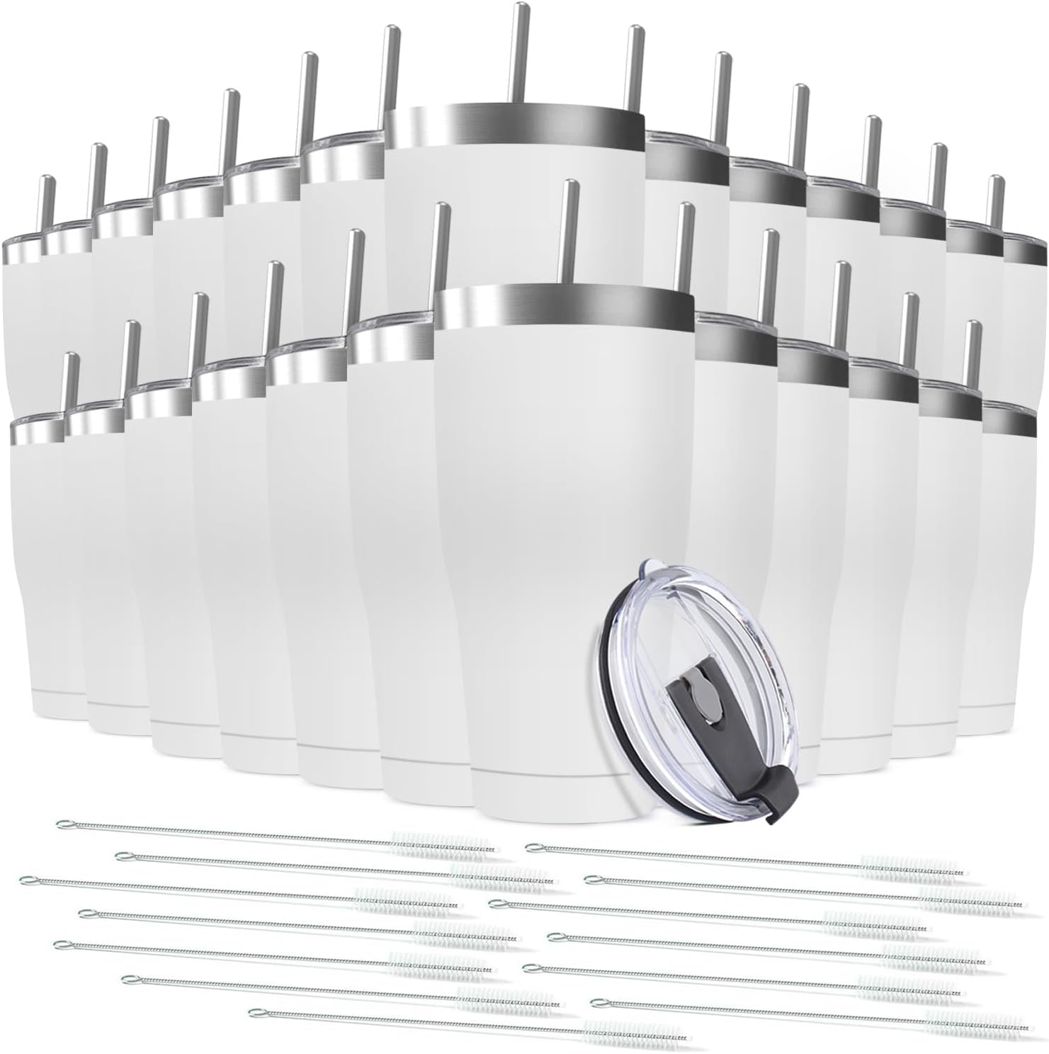 25 Pack 20oz Stainless Steel Tumblers Bulk Reusable Travel Mugs with Lid, Double Wall Powder Coated Coffe Cup for Home, Office, Outdoor Suitable for Vehicle Cup Holders