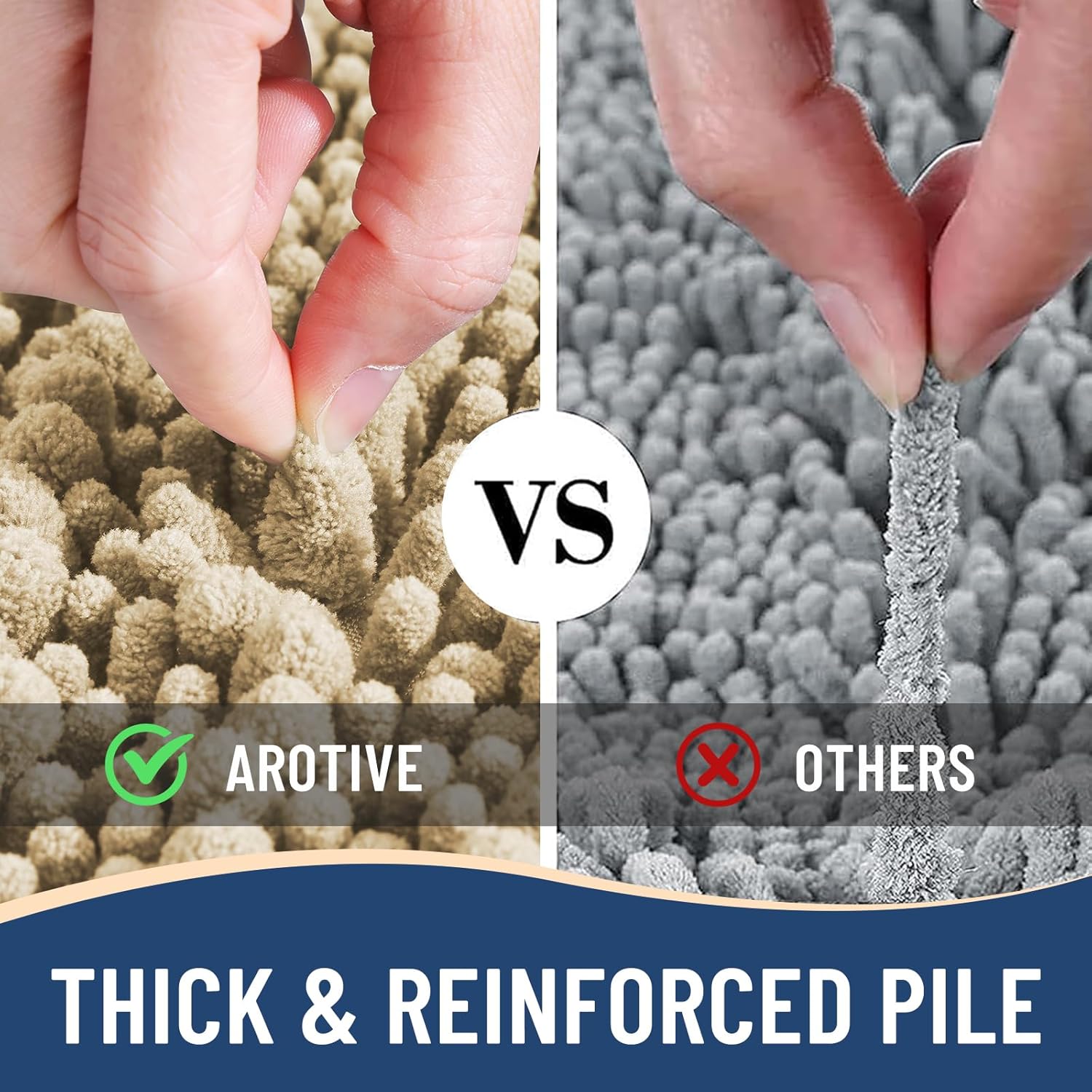 Arotive Luxury Chenille Bathroom Rug Mat, Extra Soft Thick Absorbent Shaggy Bath Rugs, Non-Slip Machine Wash Dry, Plush Bath Mats for Bathroom, Shower and Tub, 47x32, Beige