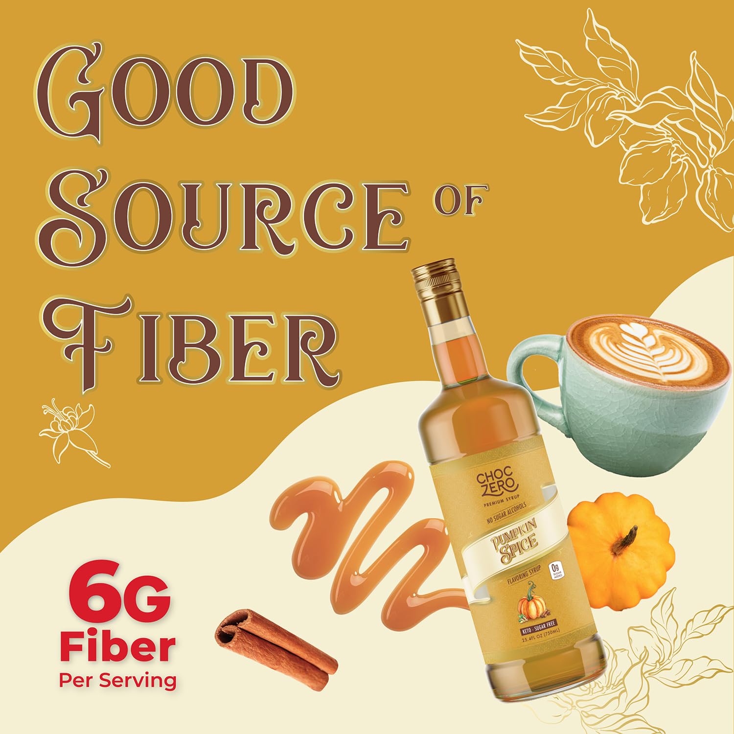 ChocZero Sugar Free Coffee Syrup, Pumpkin Spice Flavor, Simple Syrup Drink Mix, Chai Latte, Protein Shakes & Baking, Gluten Free, All Natural, 25.4 Ounces Bottle (Pack of 1)