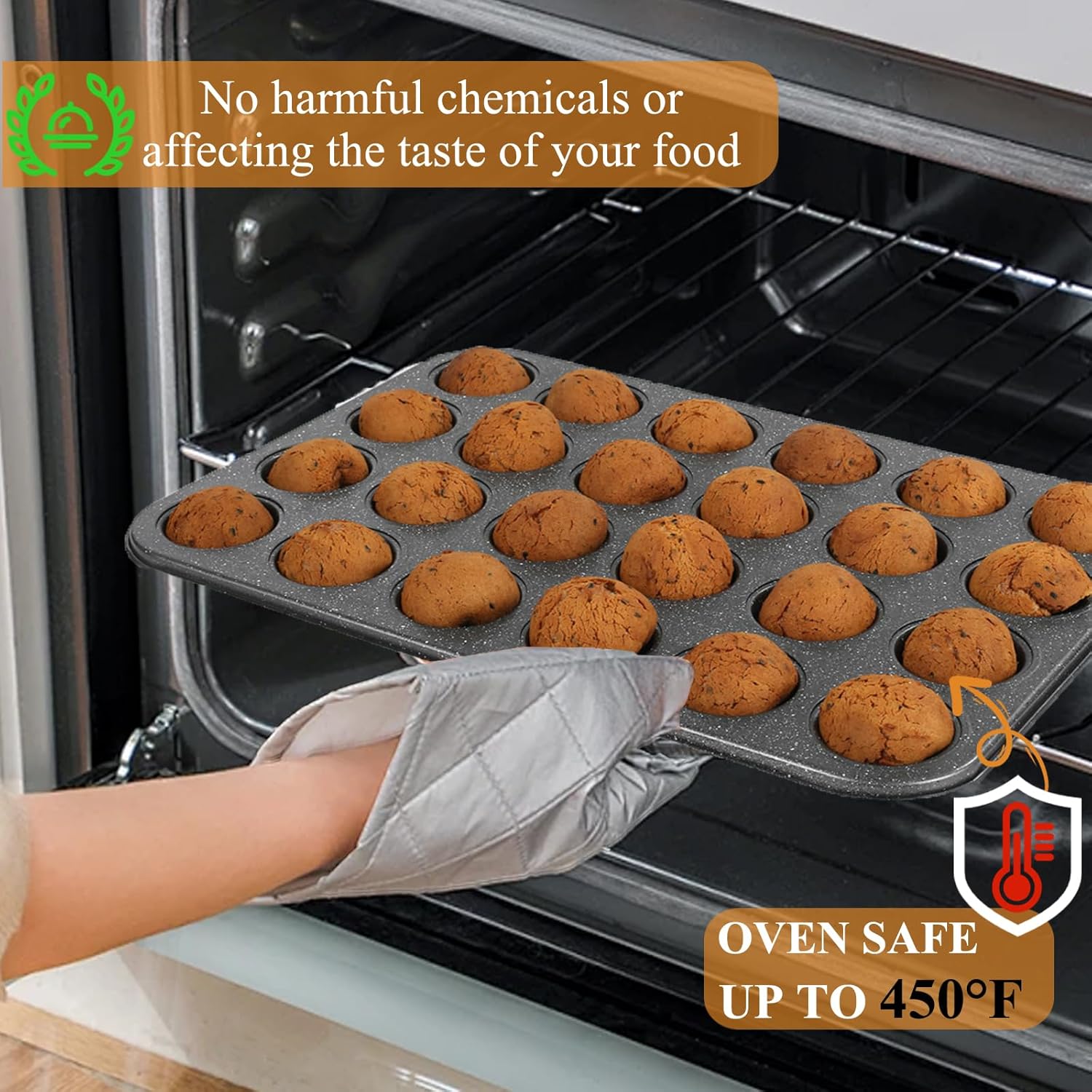 - 【PREMIUM QUALITY】This muffin pan nonstick is made of high quality carbon steel material with gray marble deluxe ceramic coating. Its rich black and white accent flecks make this bakeware both high fashion and high function.