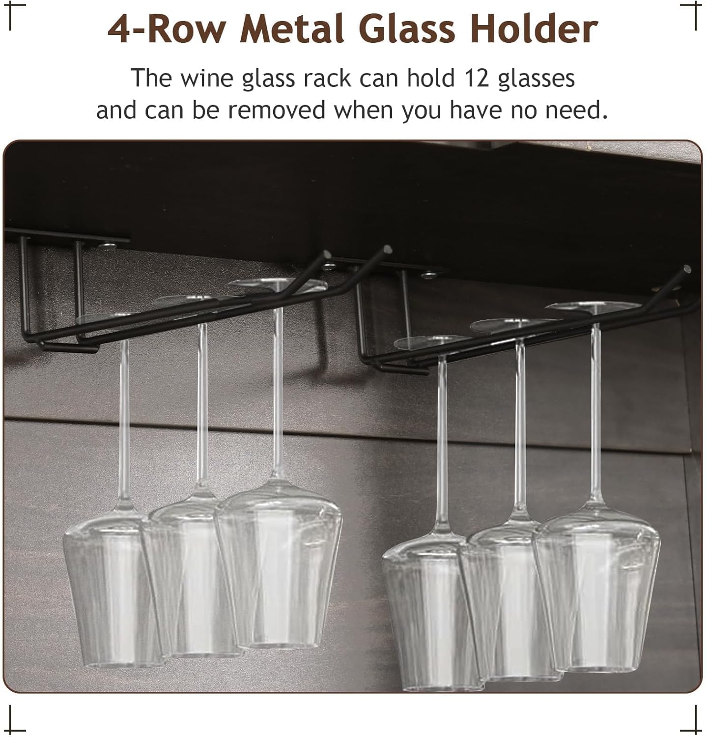 - [Extra Storage Coffee Bar Cabinet]: This coffee bar cabinet has extra storage shelves to increase storage space compared to the classic traditional. It has a top storage shelf which can storage and display. And the 6 hooks on the iron tube of the shelf can easily hang your cups, or other things you want