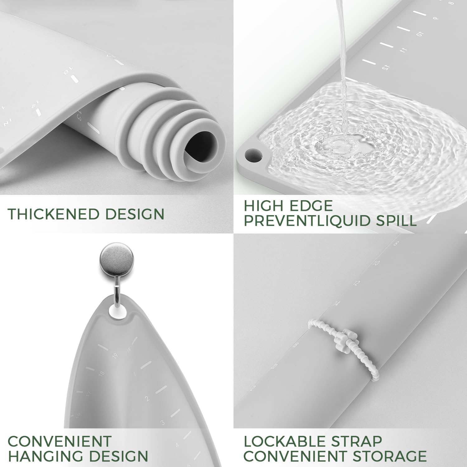 Silicone Baking Mat 28" x 20", Extra Thick Dough Rolling Mat with Measurements and Edge Heightening, Non-stick Food Grade Silicone Pastry Mat for for Pastry, Bread, Cookies, Pizza, Fondant, Pasta