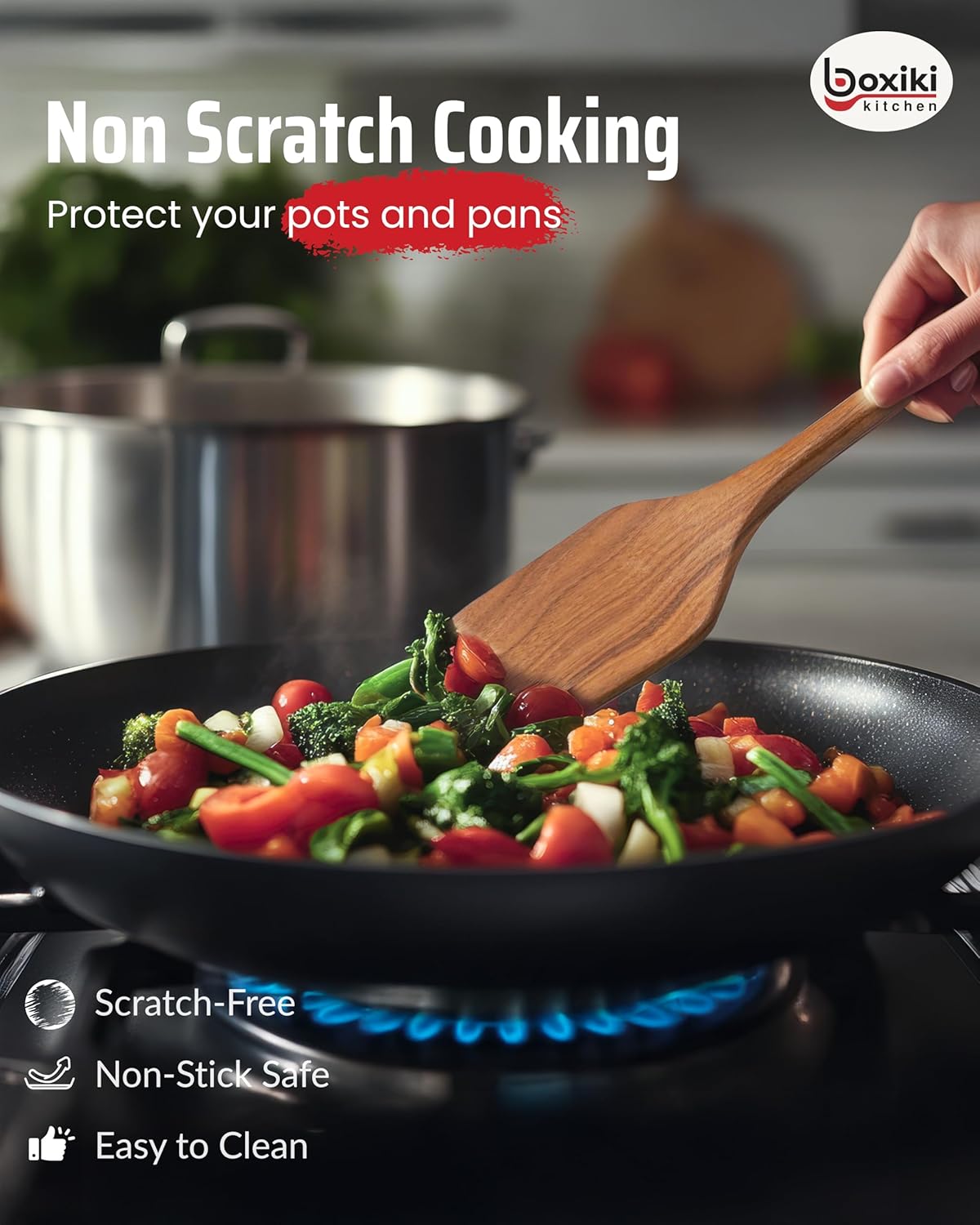 - Gentle on Your Pans – No more worrying about scratches! The smooth, splinter-free finish of our wooden spoon sets for cooking keeps your pots and pans safe, while still looking beautiful on your countertop or among your favorite wooden kitchen accessories.