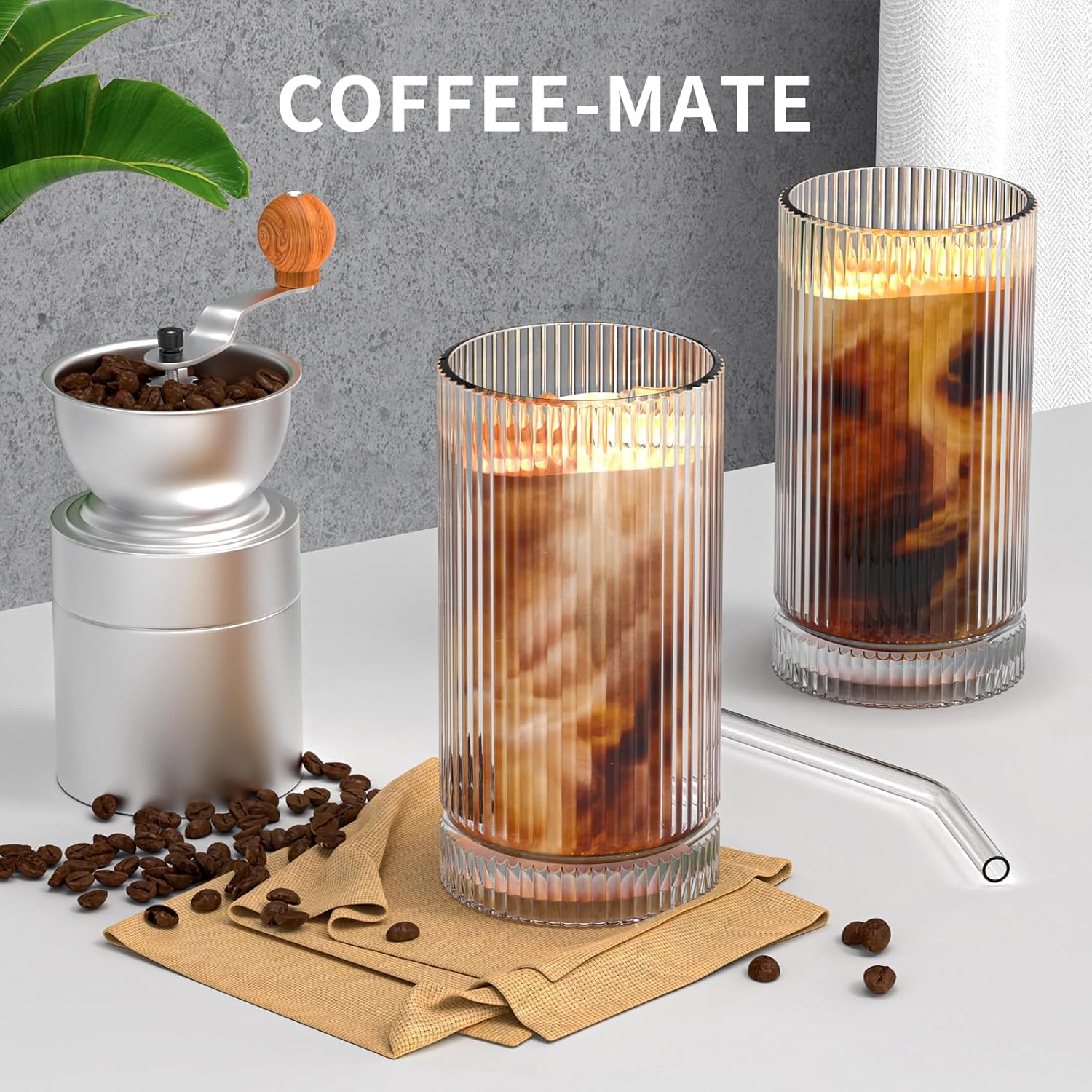 15 Oz Glass Cups with Straws, Vintage Glassware for Whiskey Cocktail Beer, Iced Coffee Cups and Drinking Glassare (2 PACK