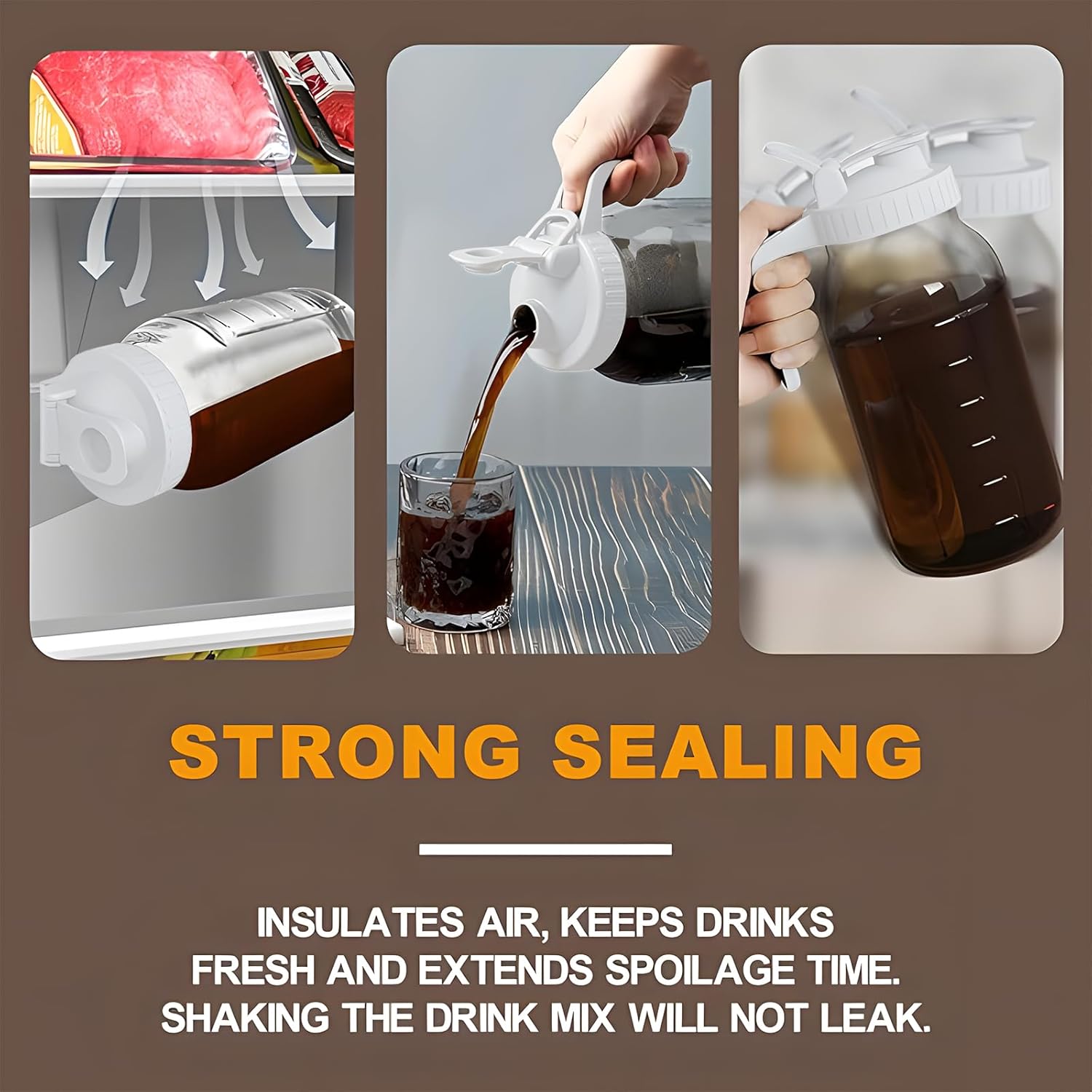 - 【Sturdy Sealing】 - Our liquid pitcher features a sturdy sealing system to keep your drinks fresh and prevent leakage. The leak-proof spout and sealing ring perfectly isolate the mason jar pour spout from the inside and outside, preventing food odors from affecting the taste. You can store your drinks with confidence, knowing that they will stay fresh and leak-free, even when the pitcher is lying down