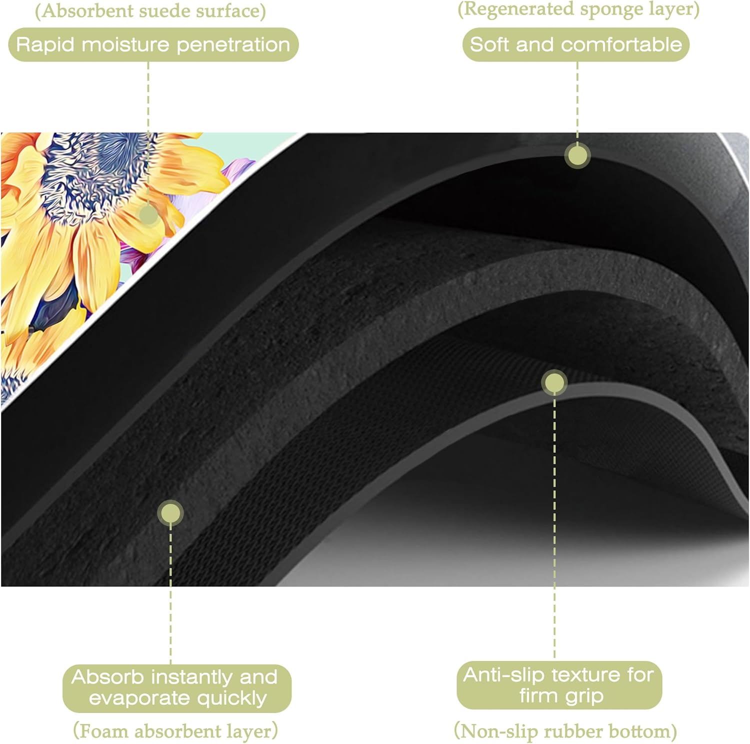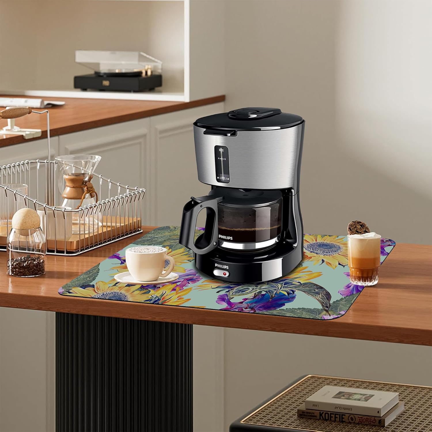 Dish Drying Mat Watercolor Sunflowers Irisflowers Floral Kitchen Mat 12"x19" Bsorbent Coffee Maker Mat for Dishes,Utensils Coffee Maker Pots and Pans Easy Clean Dish Slip Resistant Pad