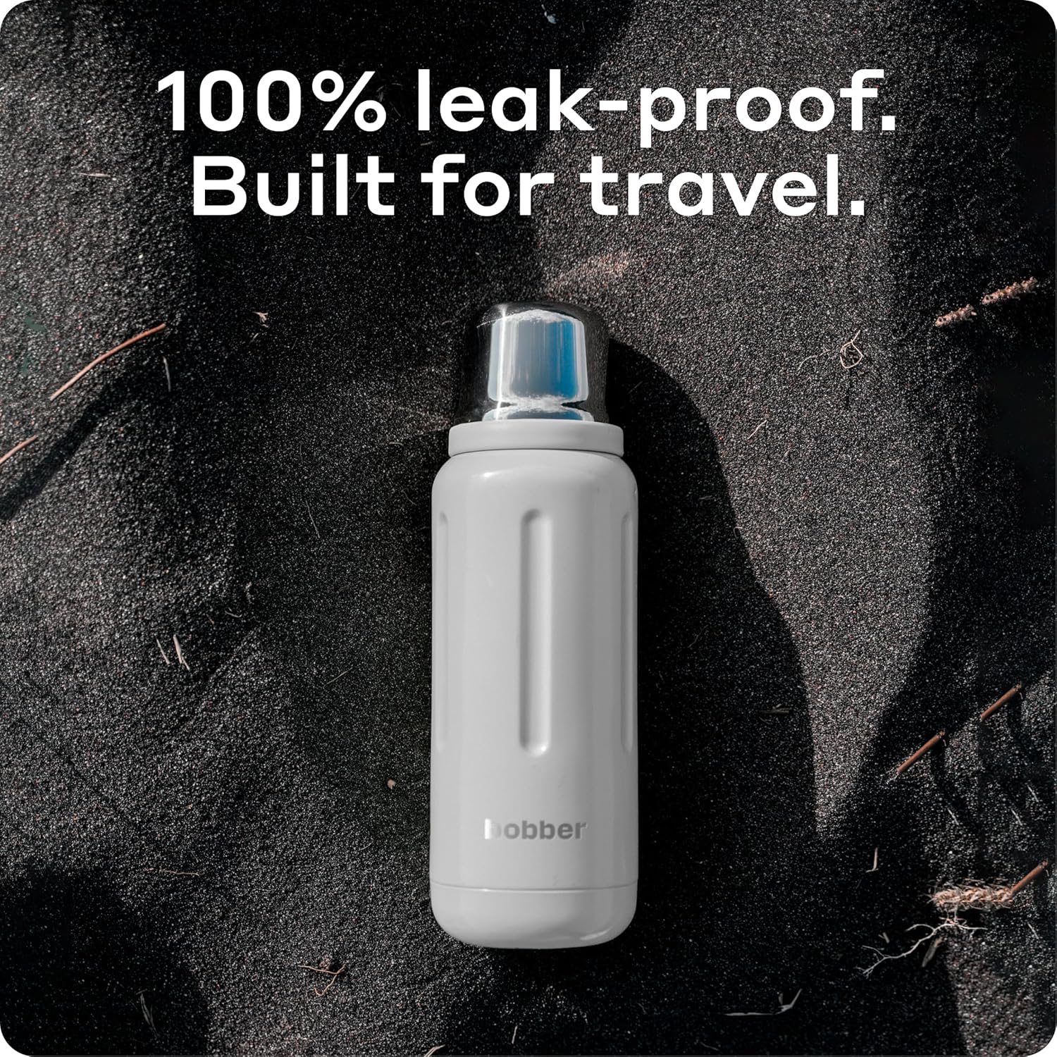 BOBBER 26 oz Stainless Steel Travel Thermos for Hot Drinks – Dishwasher Safe Metal Water Bottle with Cup Lid for Men, Hiking, Travel – Keeps Hot for 36 Hours – BPA-Free, Vacuum Insulated (Iced Water)