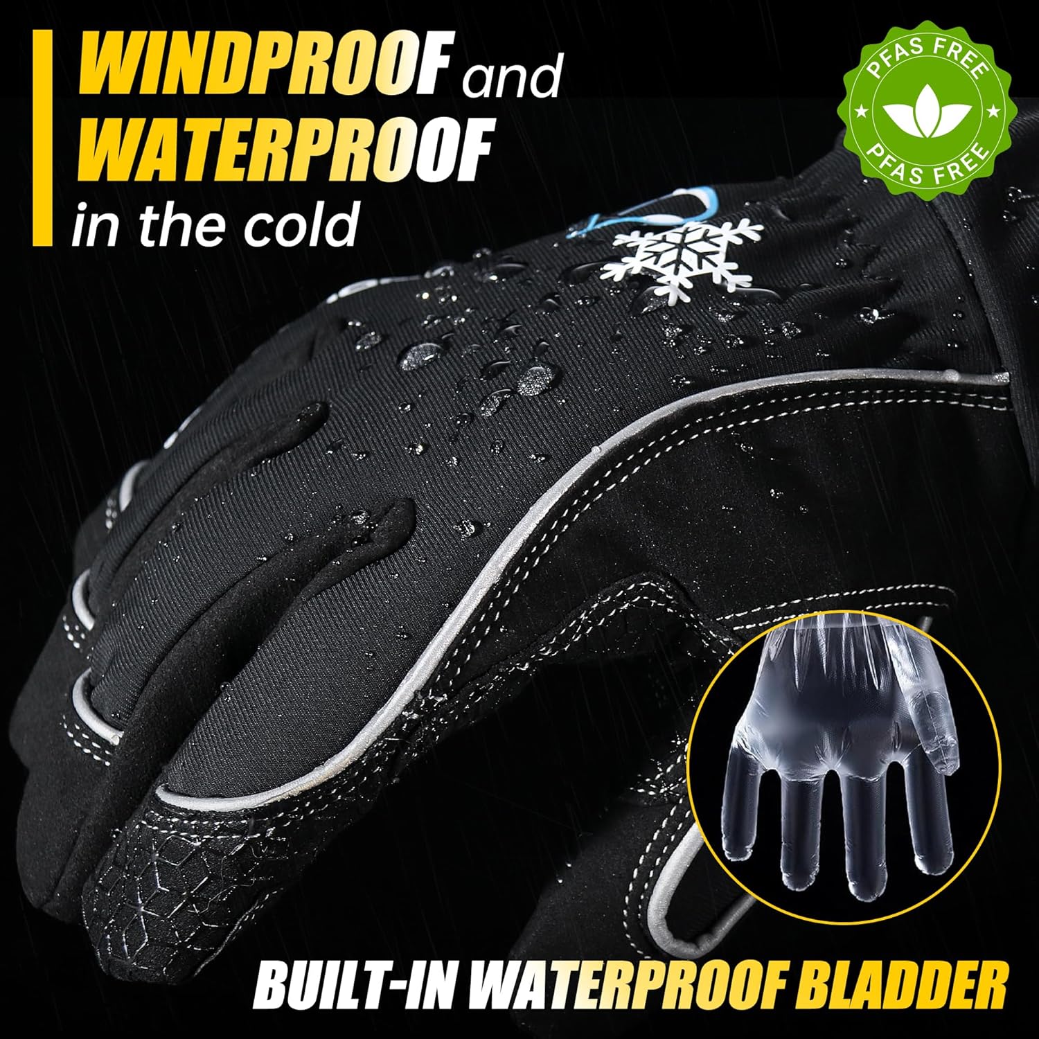 - Waterproof winter gloves for men & women: Full waterproof bag insert between liner and shell keep your hands warm and dry when working in snow and cold wet environments. great for ice fishing, industrial freezer, shoveling snow, ski and other winter outdoors sports