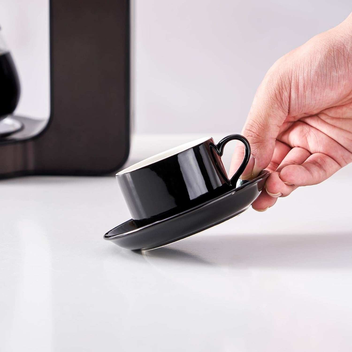 - 1.Elevate your kitchen experience with the MEICHU Espresso Cups Set. This set includes 4pcs 8 Ounce Espresso Cups with Saucers and Metal Stand, all in a classic black color. Perfect for people who enjoy coffee and conversation!