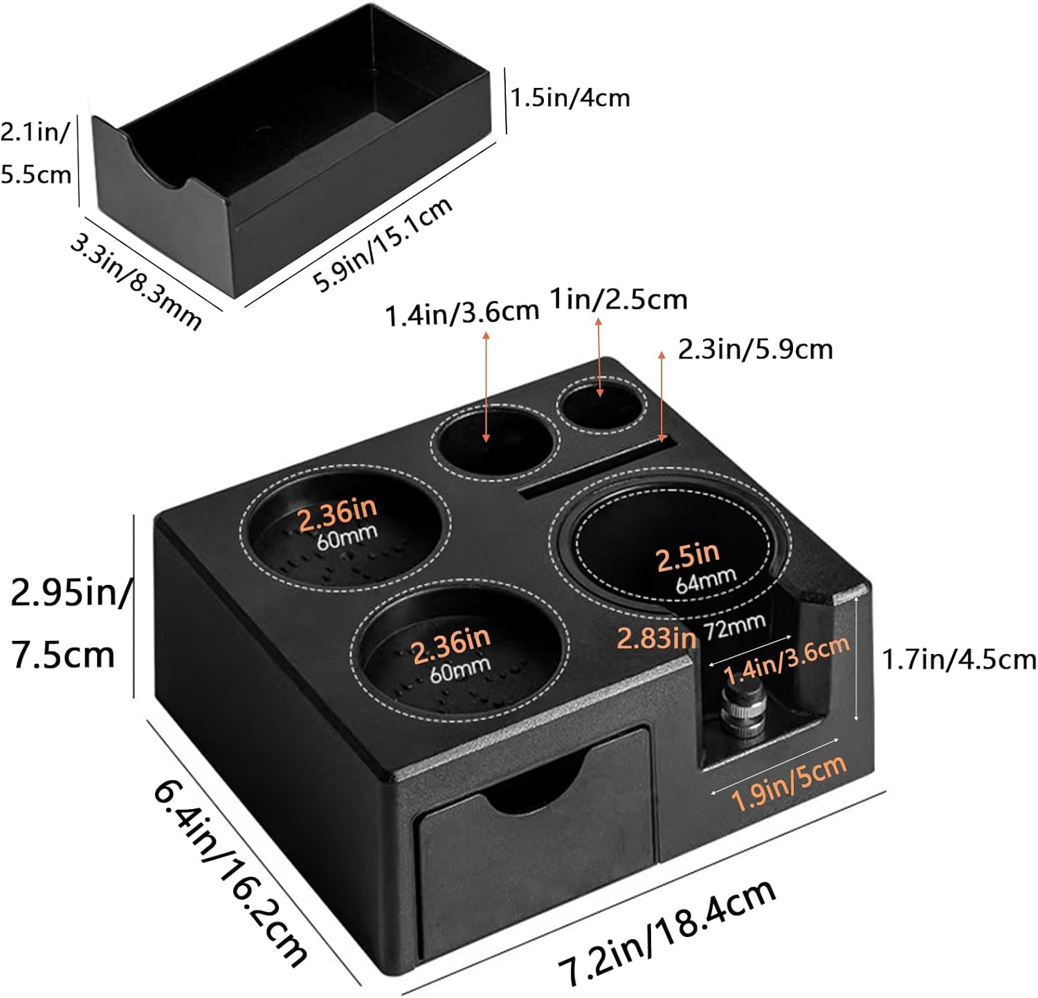 - Premium Material :This tamping station Made of durable ABS, steady and easy to clean, just need to rinse by water or wipe by wet cleaning towel. With 6 non-slip rubber feet, Anti slip and scratch resistant, protecting the countertop.