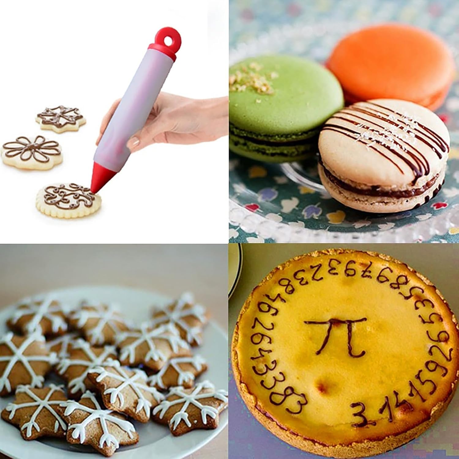 - Cake Decorating Pens Materials: Our icing piping pastry nozzles pen body is silicone, and the propeller and pen tip are plastic. The soft silicone makes the pen flexible and thick, that can extend the heat preservation time, prevent chocolate during the operation of the rapid solidification. And it is durable and reusable, for your long term use