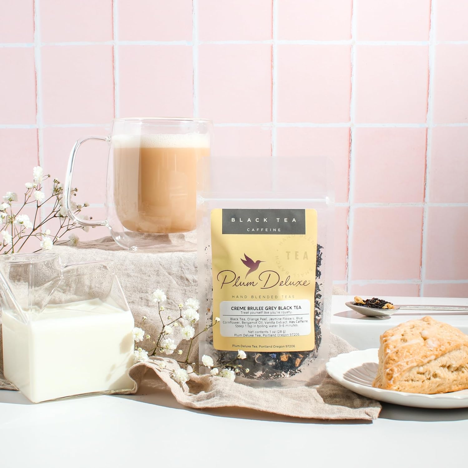 Plum Deluxe Creme Brulee Earl Grey Black Tea (60-80 Cups), Premium Loose Leaf Tea Leaves, Hot or Iced, Sweetener and Dairy Free, No Artificial Flavors
