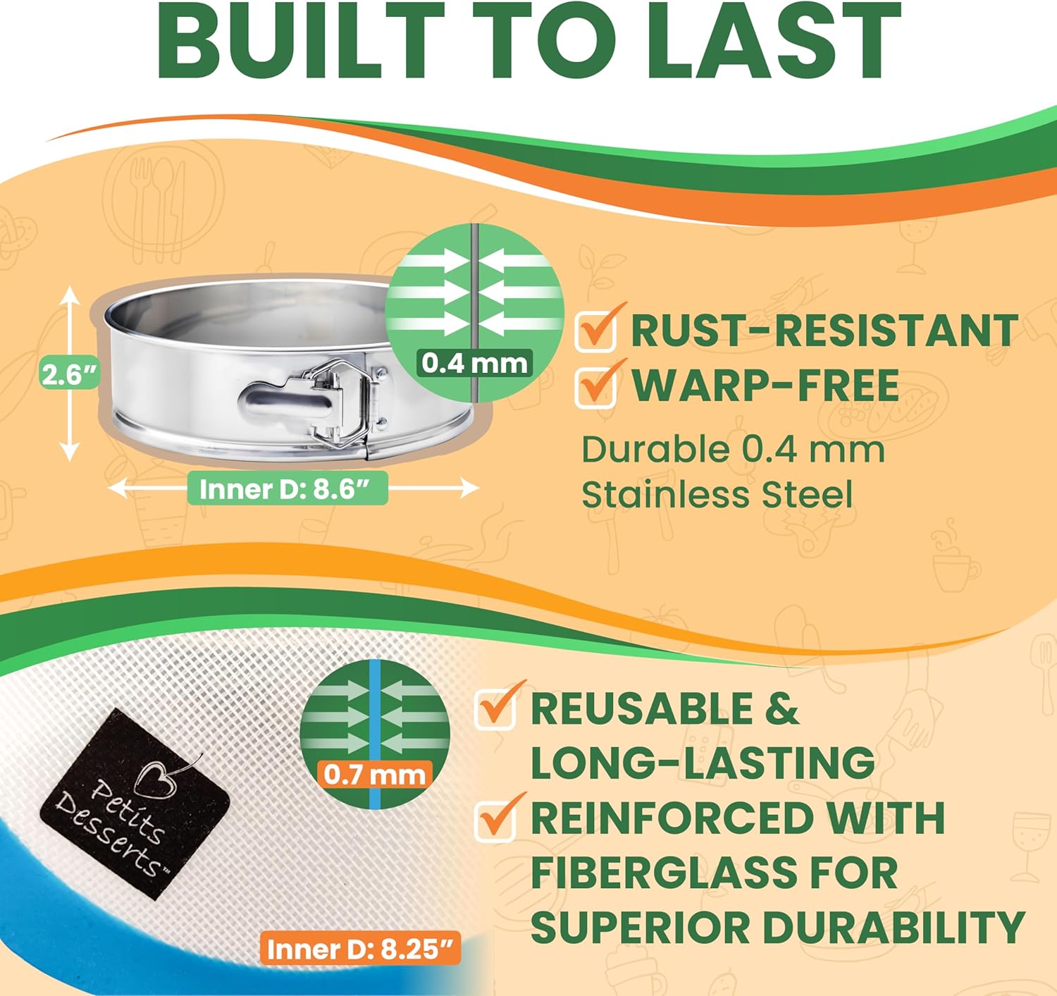 - ECO_FRIENDLY & SUSTAINABLE BAKING SOLUTION - Our reusable silicone liner offers an eco-conscious alternative to single-use parchment, reducing waste with every bake. This long-lasting 9 springform pan set is ideal for bakers who prioritize both quality and sustainability.
