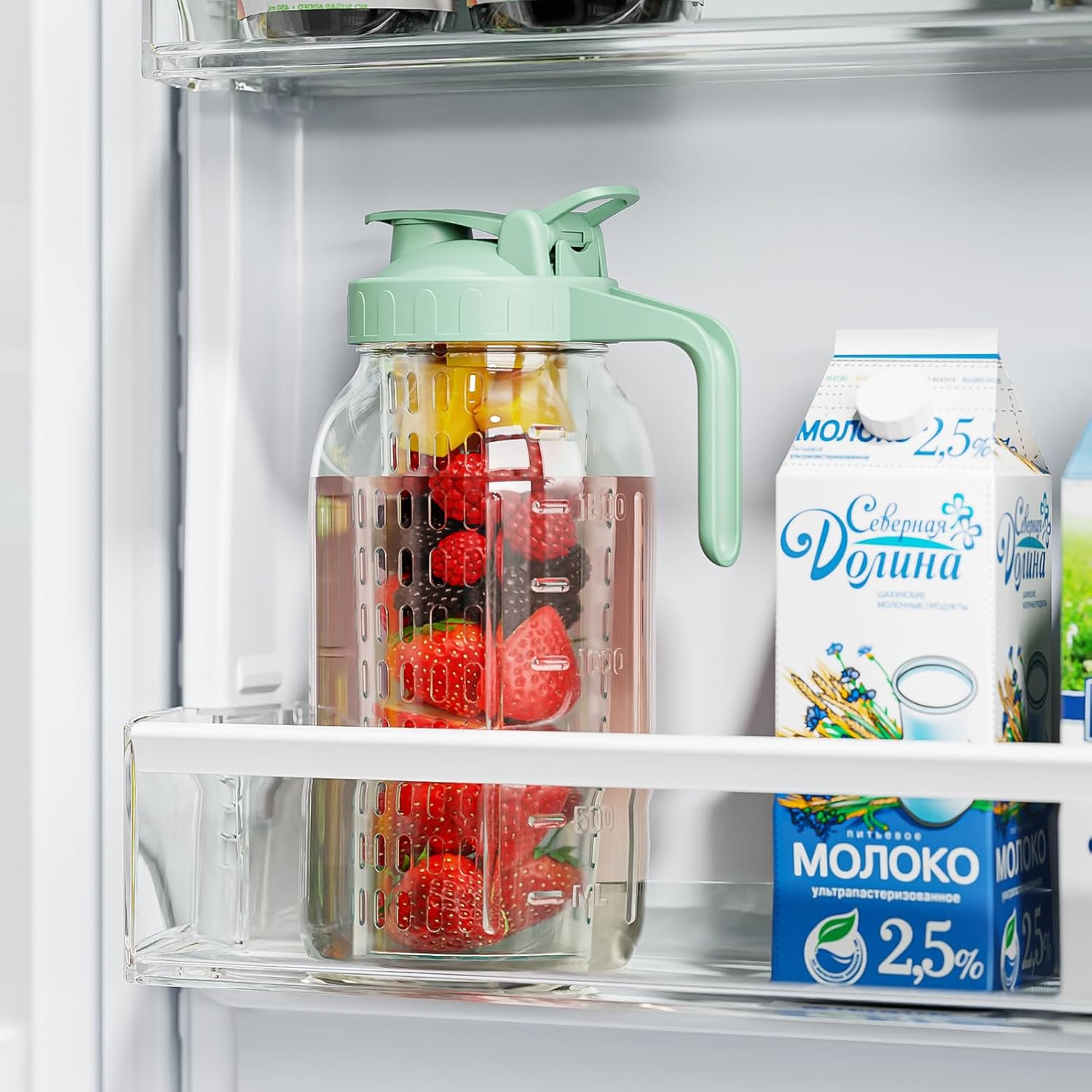 - Fruit Infuser Design: This 64oz mason jar pitcher is specifically crafted for those who enjoy fresh and flavorful drinks. The infuser allows for the effective release of flavors and nutrients from fruits and tea leaves, ensuring each sip is bursting with natural goodness.