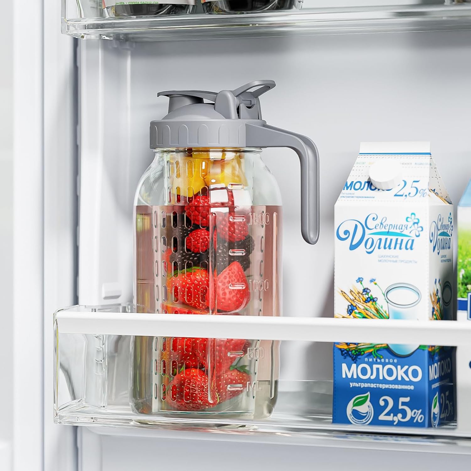 - Fruit Infuser Design: This 64oz mason jar pitcher is specifically crafted for those who enjoy fresh and flavorful drinks. The infuser allows for the effective release of flavors and nutrients from fruits and tea leaves, ensuring each sip is bursting with natural goodness.