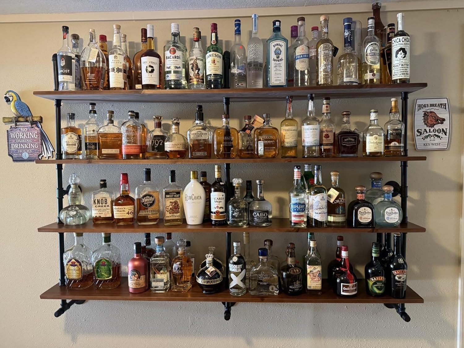 - 【Multiple Place Use】This long floating shelves for wall has a unique water pipe design. This long wall shelves can be used as a kitchen rack to place oil and salt sauce cans, as a bookshelf in the farmhouse or living room or as wine rack in the bar.,any other where you want to install.