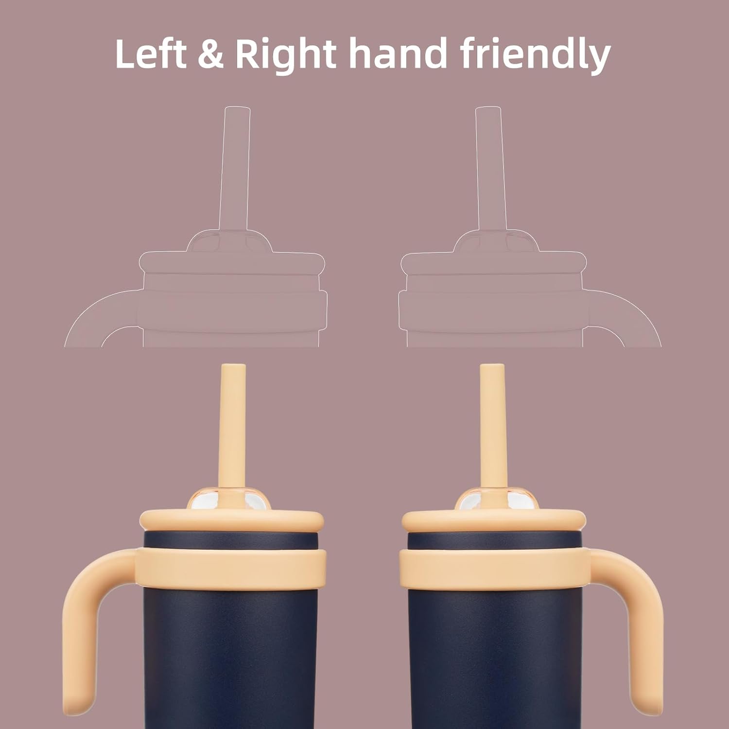 14 oz Tumbler with Side Handle, Insulated Water Bottle with Straw and 2 in 1 Lid, Stainless Steel Cup Travel Coffee Mug for Sports Office Gym,Navy Blue