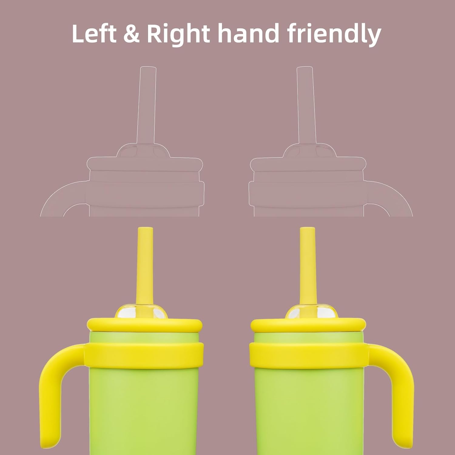14 oz Tumbler with Side Handle, Insulated Water Bottle with Straw and 2 in 1 Lid, Stainless Steel Cup Travel Coffee Mug for Sports Office Gym,Lime