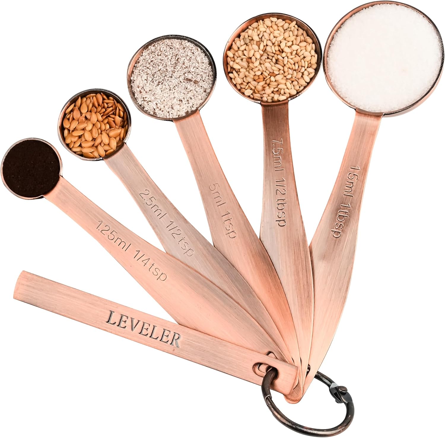 - ✱✱Copper plated measuring cups and spoons set are use food grade stainless steel material, with a copper plated finish which means that will not RUST!