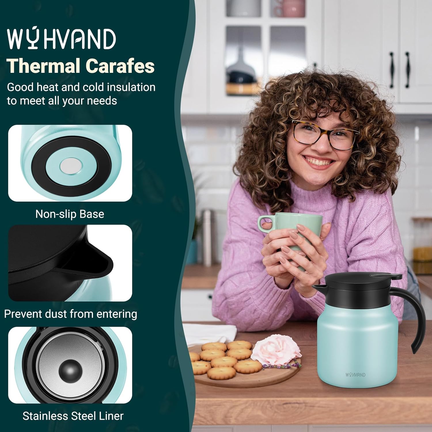 - Advanced Leak-Proof and Dust-Proof Lid: The innovative lid design on our thermal coffee carafe prevents spills and keeps beverages dust-free, ensuring maximum freshness and worry-free pouring