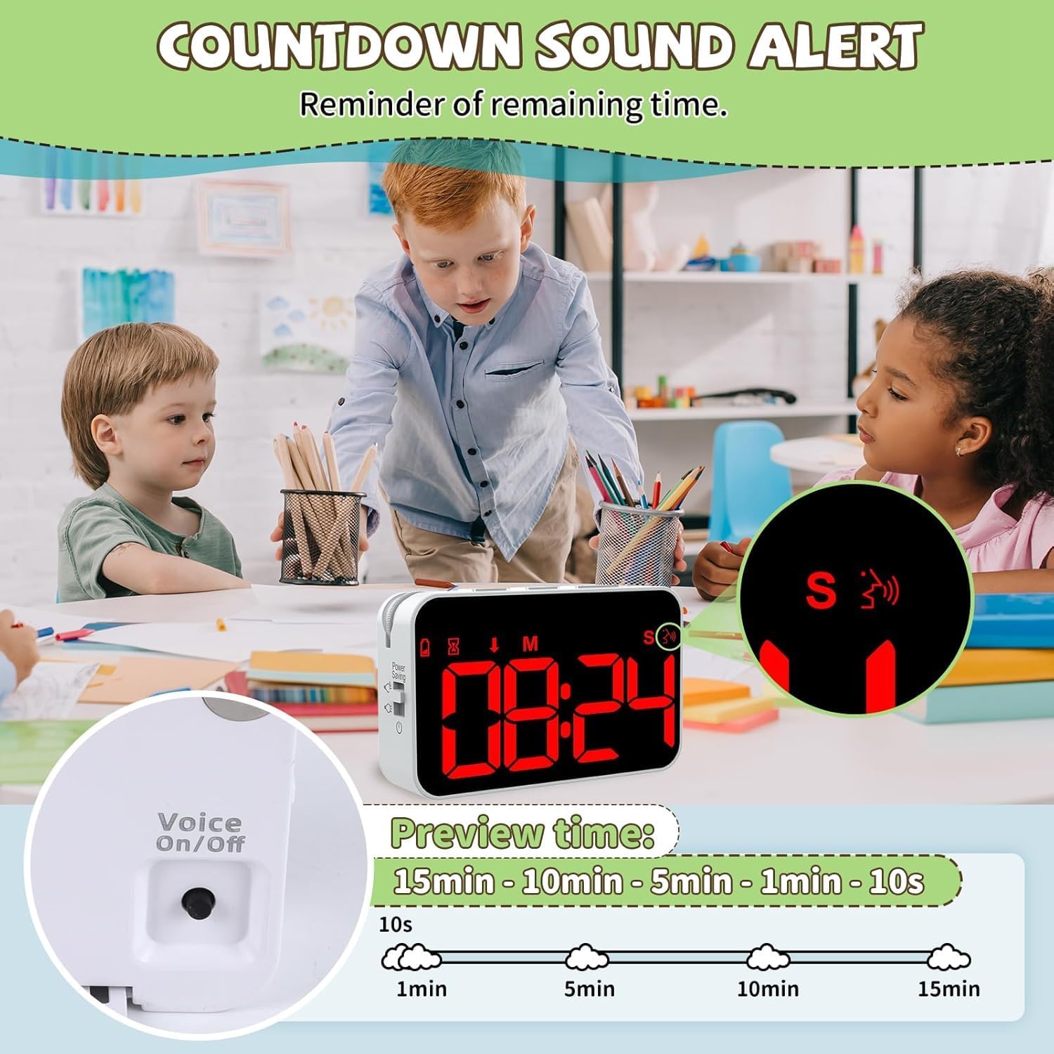 Digital Timer for Kids, 199min 59s Countdown/Up, Rechargeable, Magnetic, 3 Brightness Display, 3 Volume Levels and Vibration, with Sound Alert Function, for Kitchen, Classroom, Study, Fitness