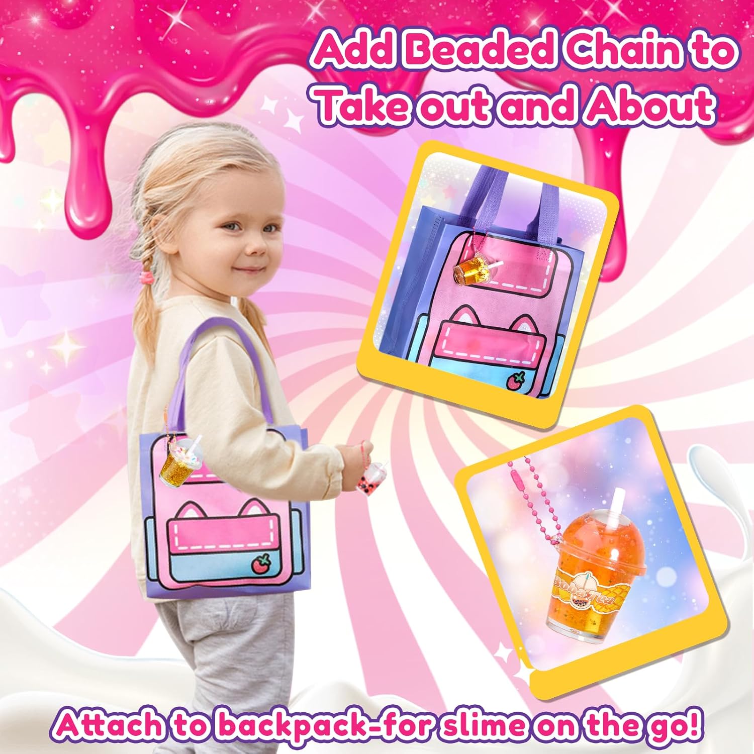- Premium Slime Experience: Our Slime Boba Tea Kit features 500cc of exclusive, high-quality slime for a silky, stretchy sensory experience. It includes a stylish handbag for carrying the kit's components.