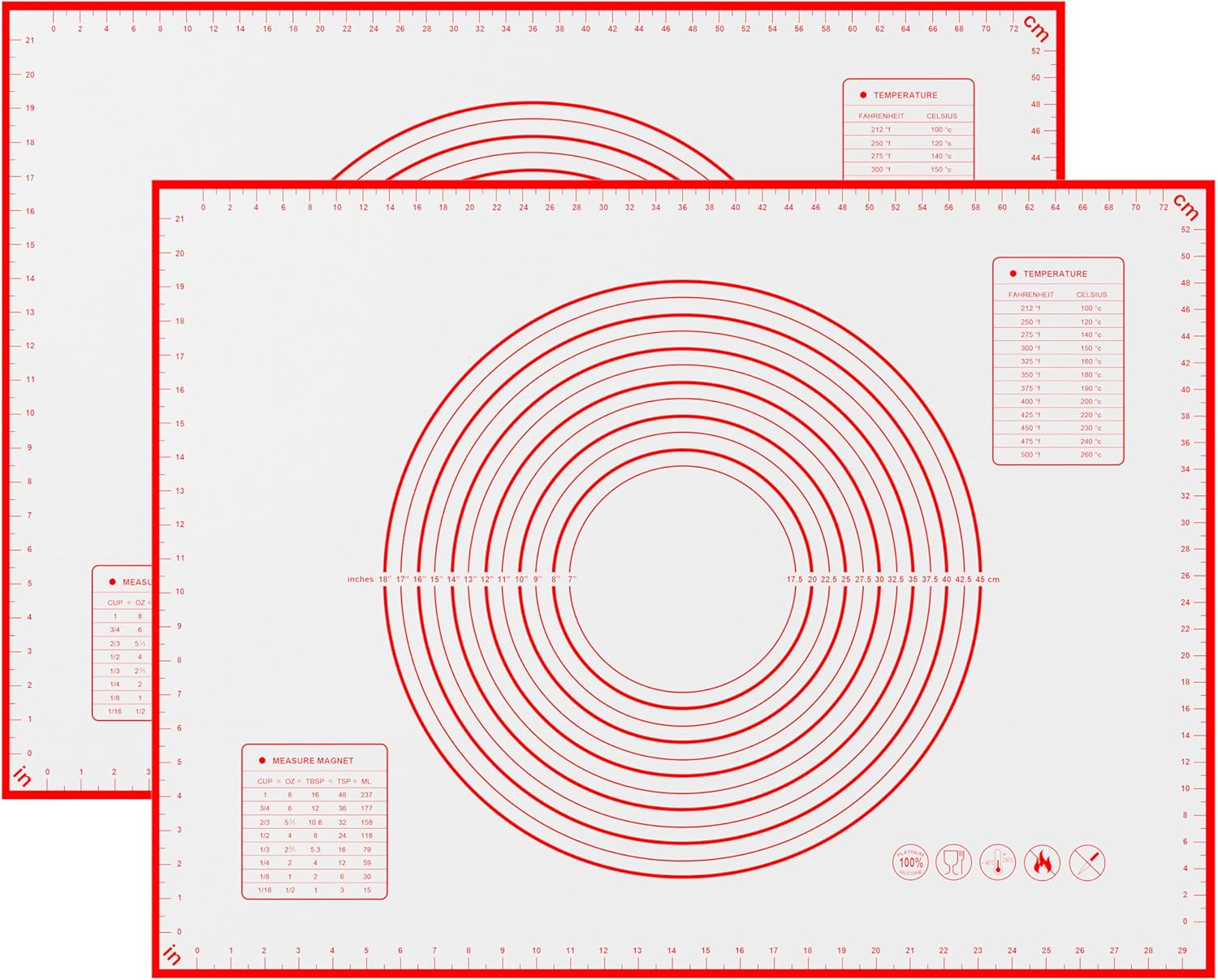 - 【Baking Measuring Helper】:Silicone Baking Mat provides accurate measurements for every home baker, making it easy to mark the size of the dough and making the baking process easier and terrier precise.