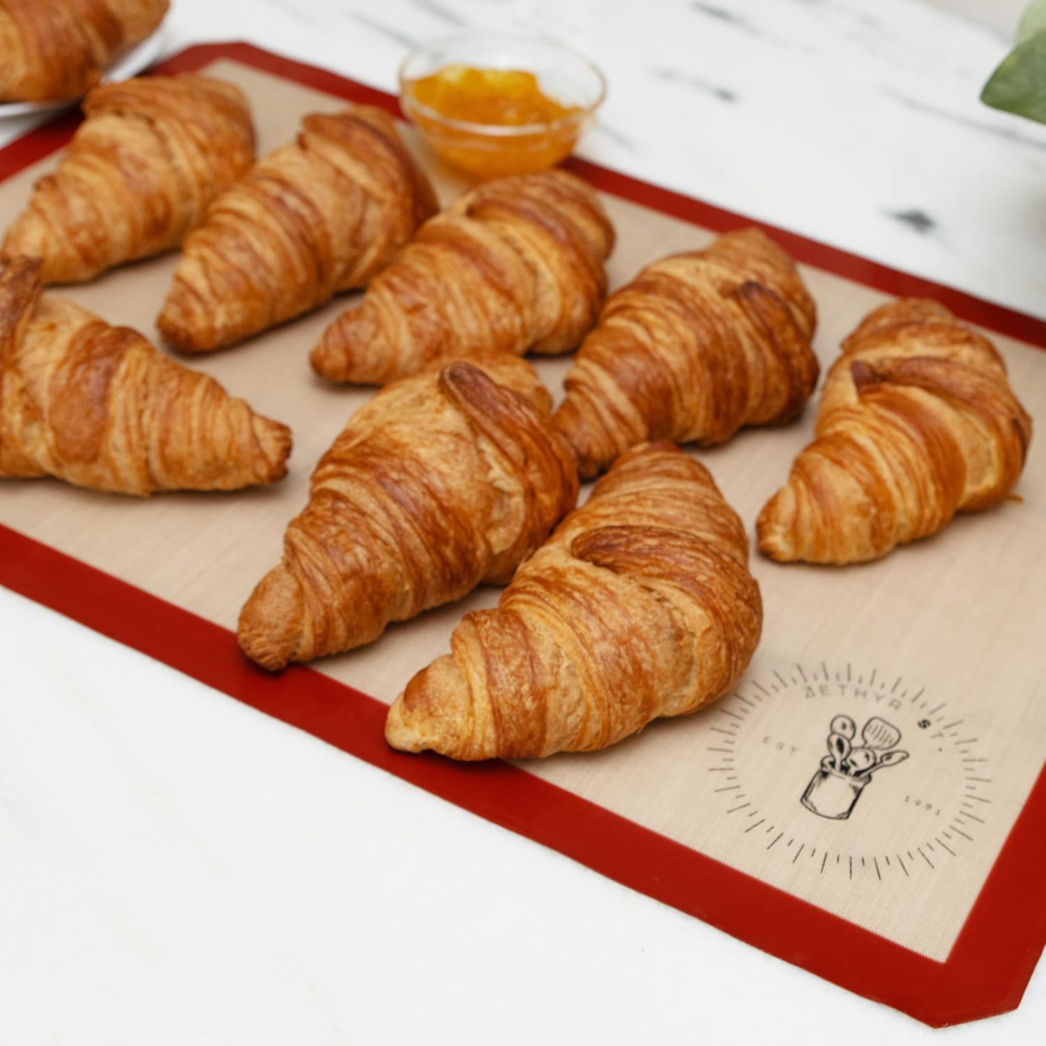 - Versatile: Full-size baking mats with red border designed for full-size cookie sheets, perfect for baking cookies, pastries, and more.