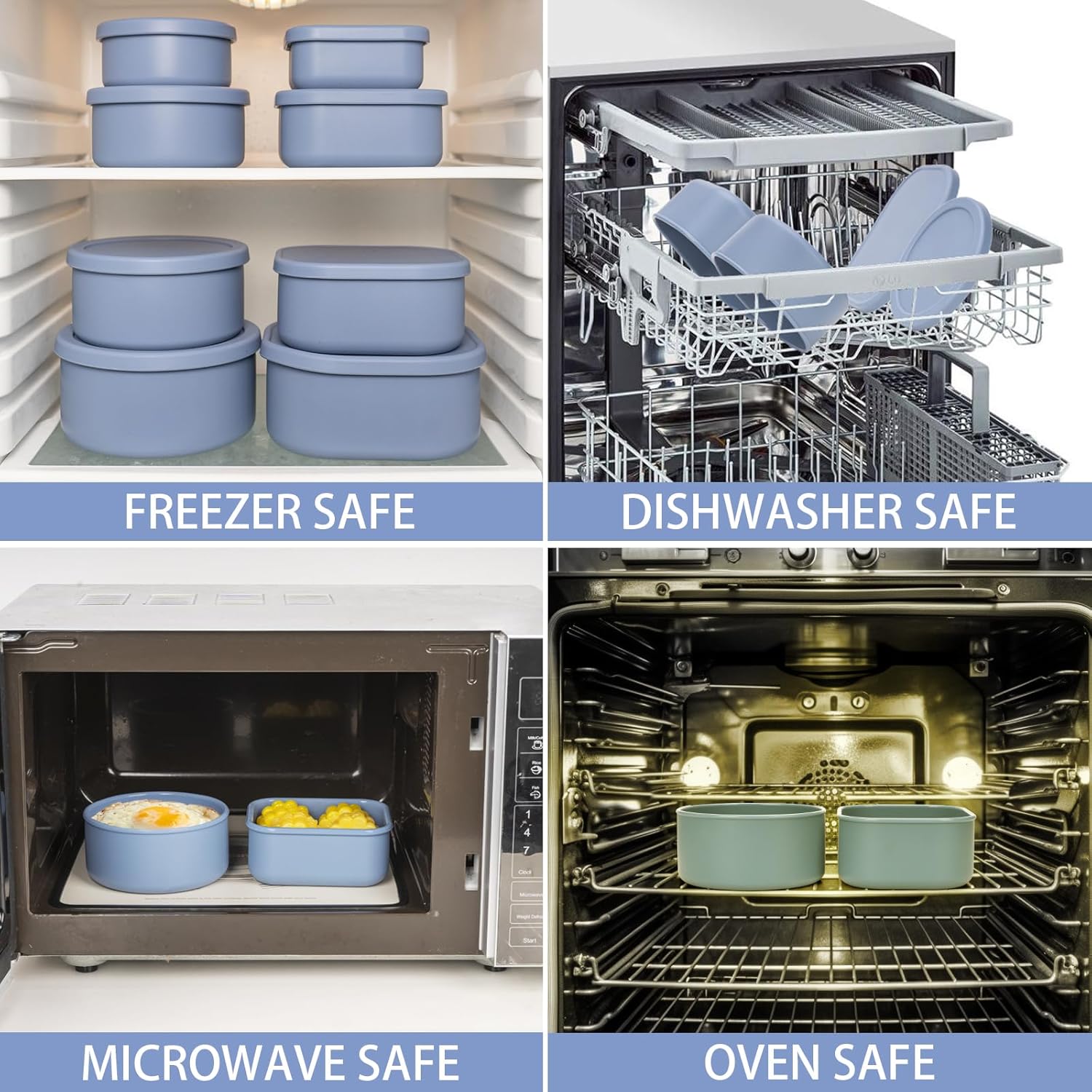 - 【STYLISH & PRACTICAL】Stylish and modern with large rounded corners, these silicone containers are designed to impress—your friends will love them at first sight. The frosted exterior adds a soft touch for comfortable grip. The glossy interior are easy to clean. Built to be sturdy with a non-slip base, these containers offer both functionality and style for everyday use
