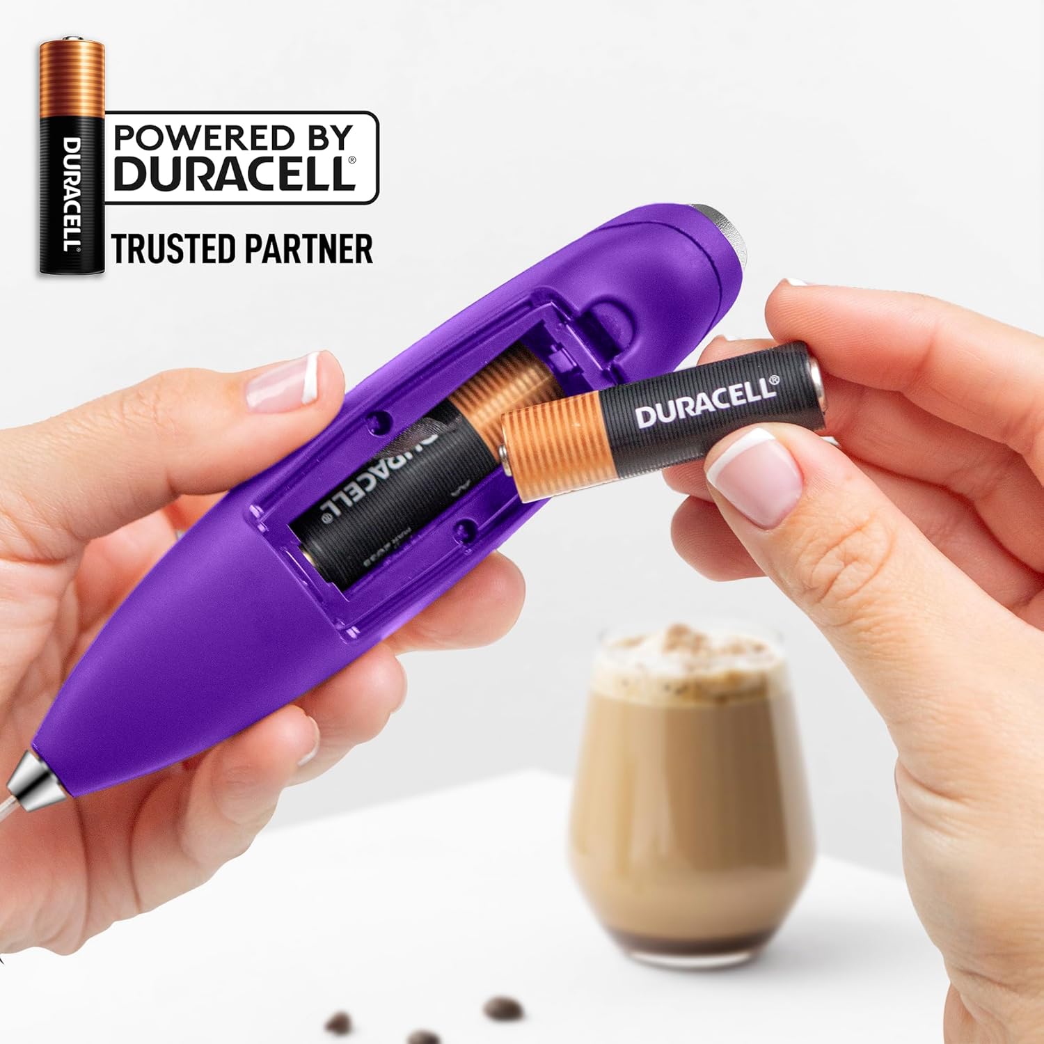 Zulay Kitchen Whisk Milk Frother with 4 Duracell Batteries - Powerful Handheld Foam Maker for Coffee, Lattes, Matcha, Hot Chocolate & Cappuccinos - Whip Creamy Froth in Seconds