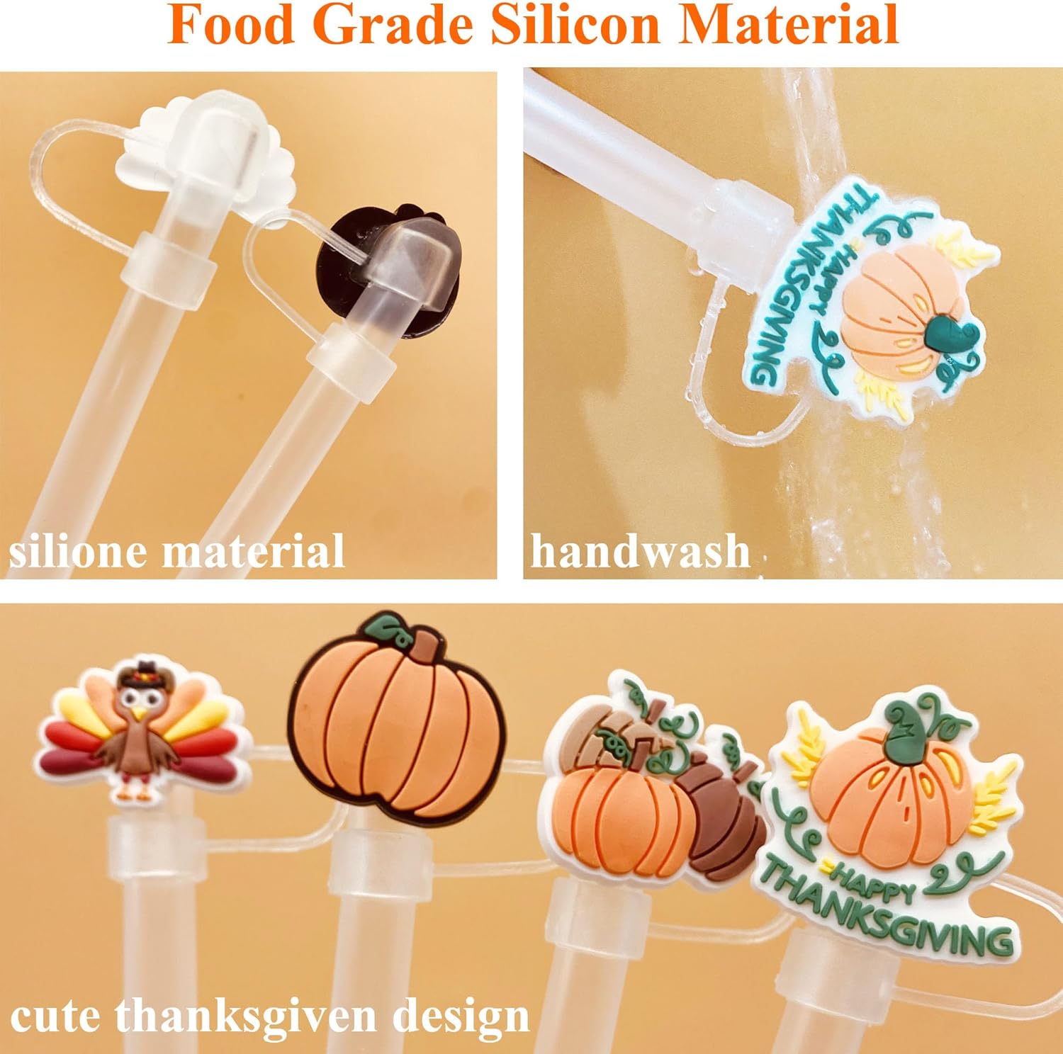- Food Grade Material: The silicone thanksgiving straw toppers caps are made of high quality food grade material, safe, non-toxic, odorless, durable and reusable. Safe materials that you can use every day with confidence. It's a must-have accessory and the perfect companion to your Stanley Cup