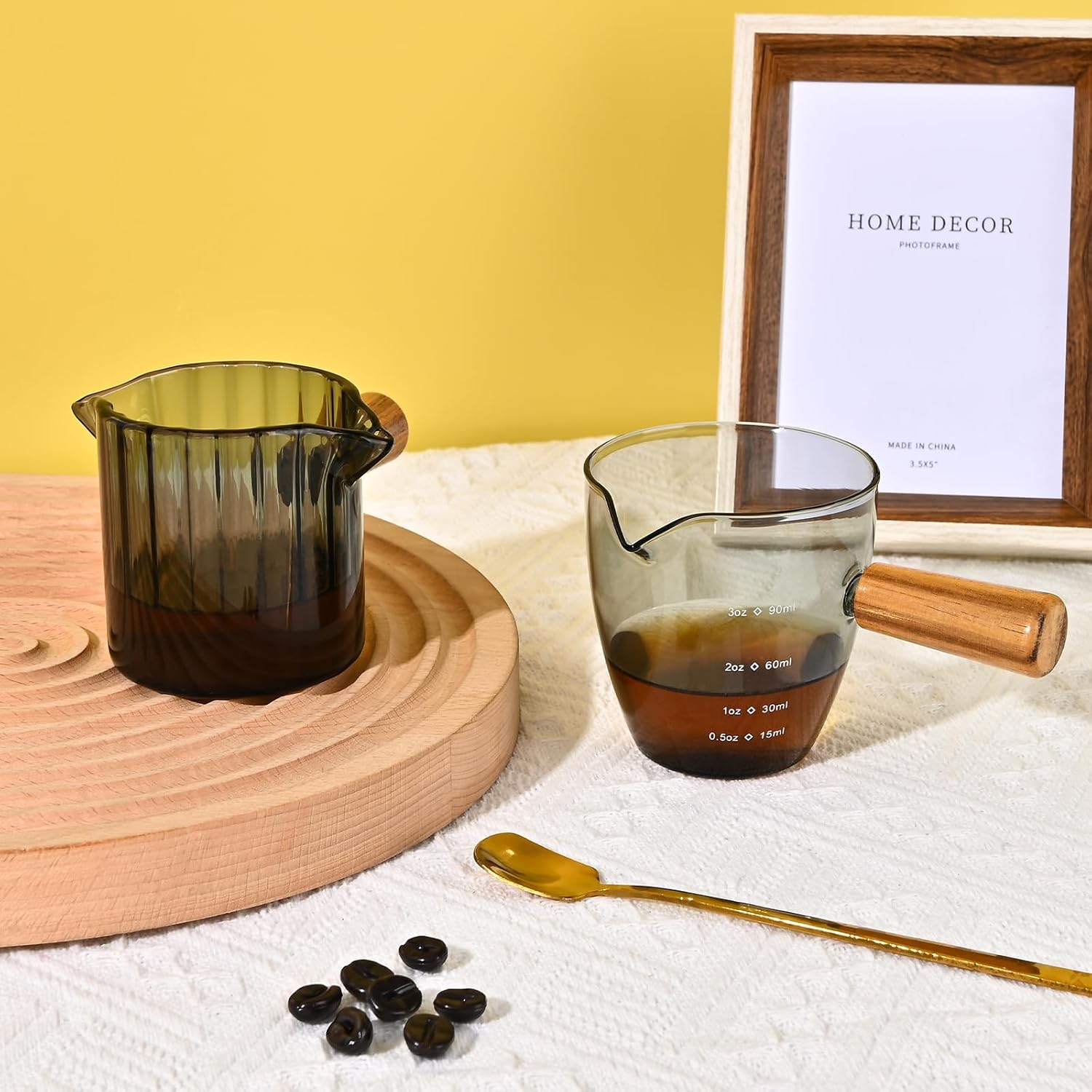 - Detail: The espresso cup has a simple and exquisite appearance; with spout for easy pouring; two clear scales on the body of the cup to keep track of the amount of coffee you need; a wooden handle for a more comfortable grip