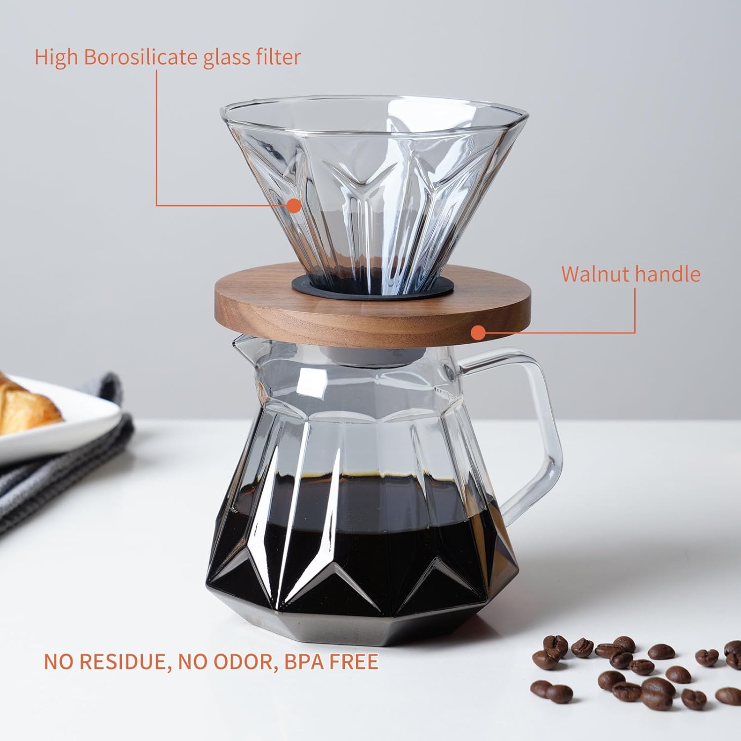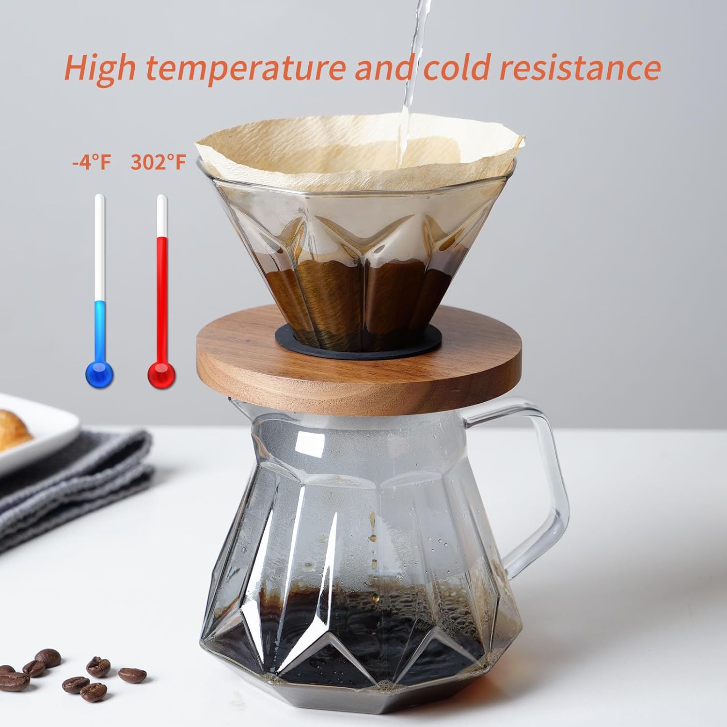 - 【Durability Safe】Both the dripper and the coffee pot are made of borosilicate glass, which is odor-free, lead-free,BPA-free, not easy to residue, ease of cleaning,dishwasher safe. The filter paper is made from natural wood pulp without any bleaching.